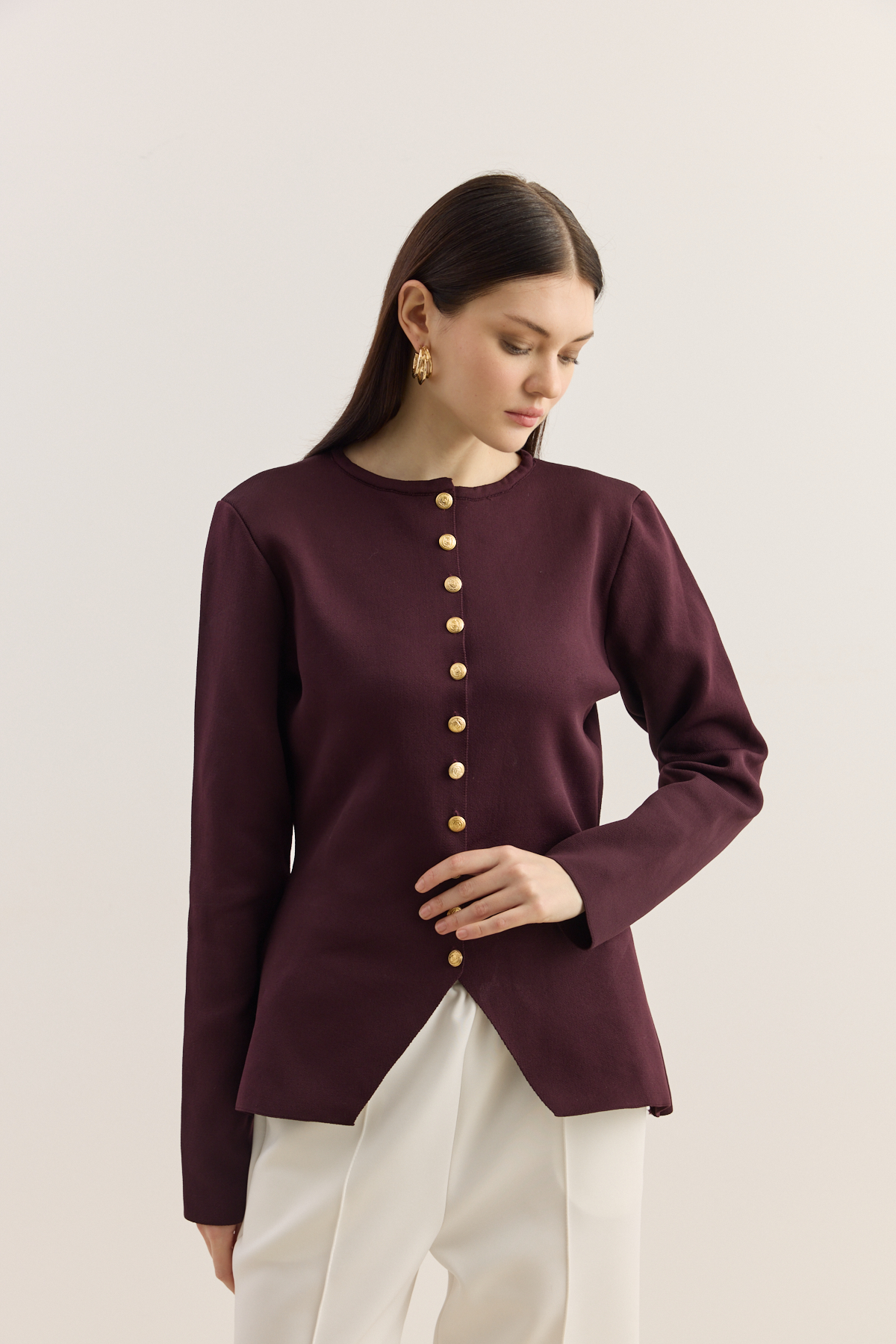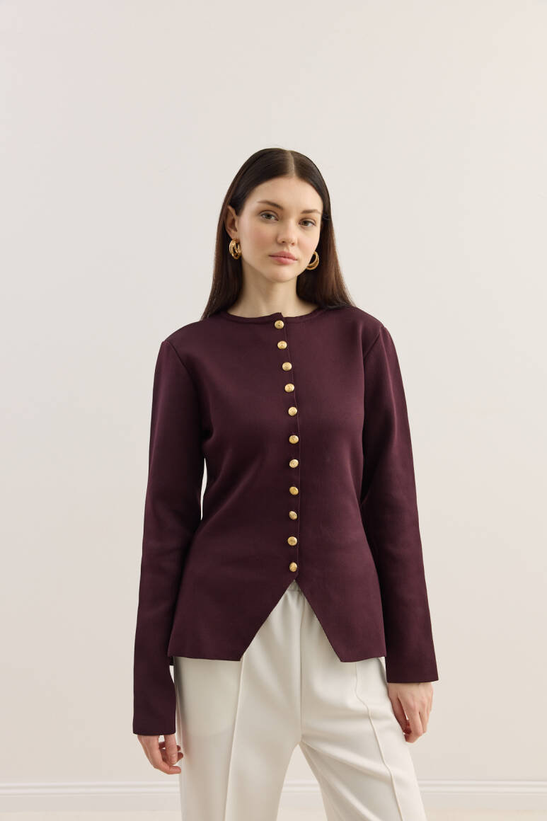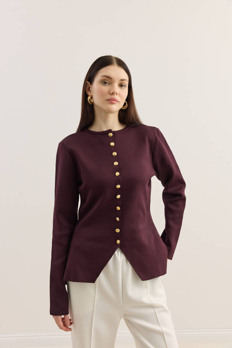 Noi Belden Oturtmalı Triko Hırka Burgonya - 2