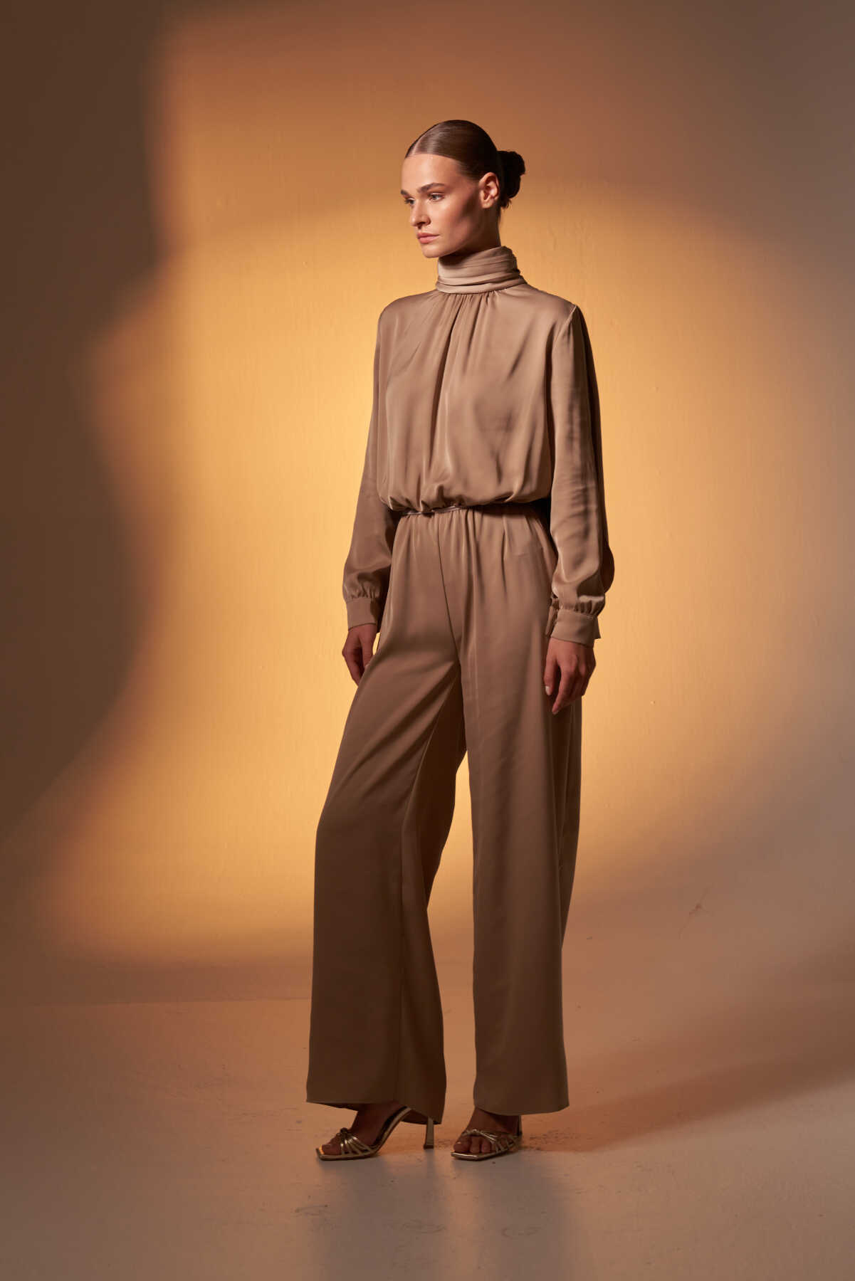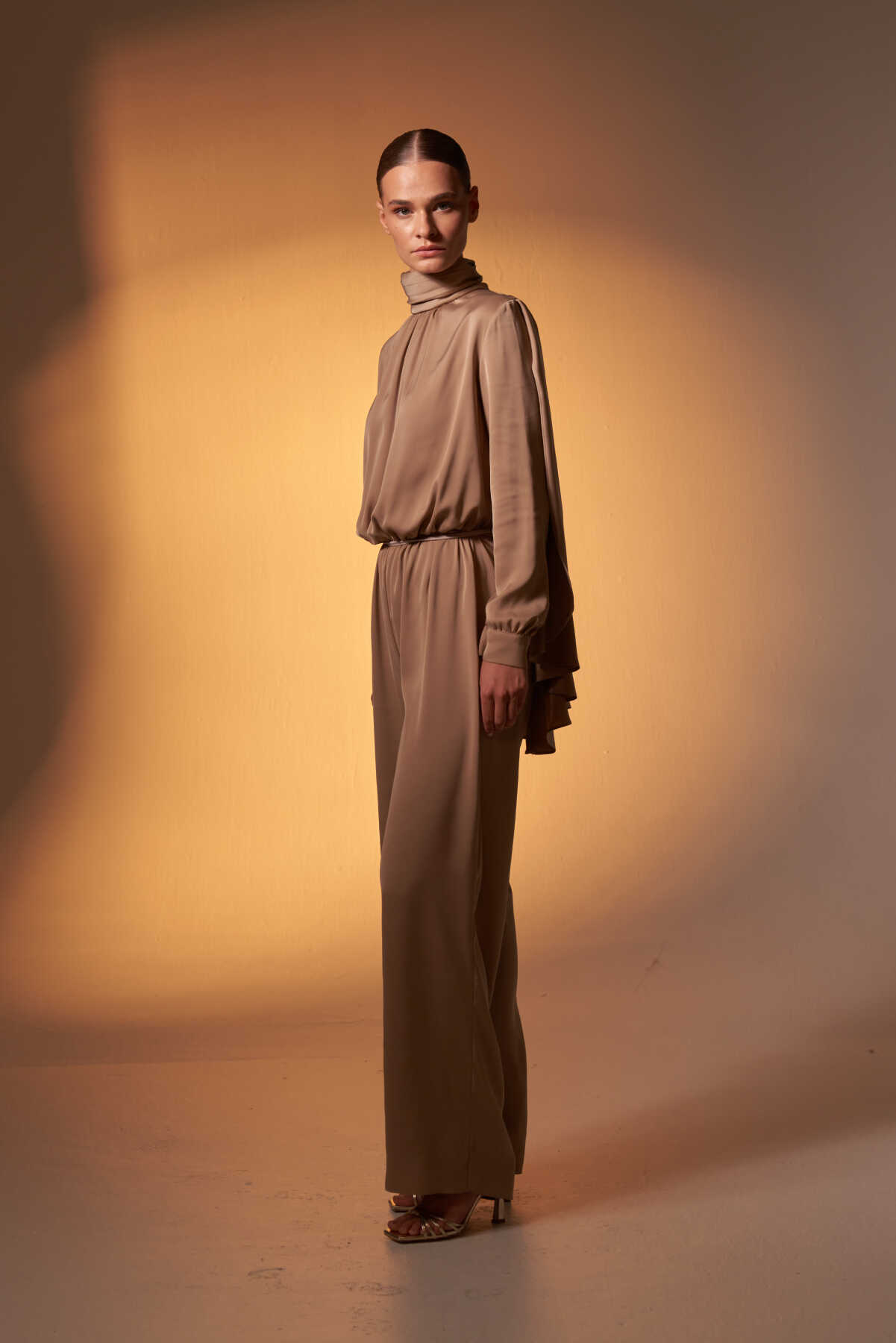 Pelerinli Saten Abiye Tulum Vizon - 2