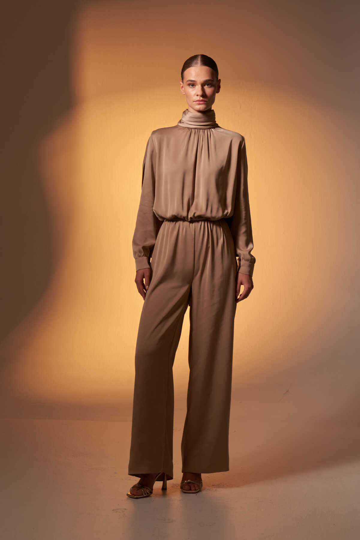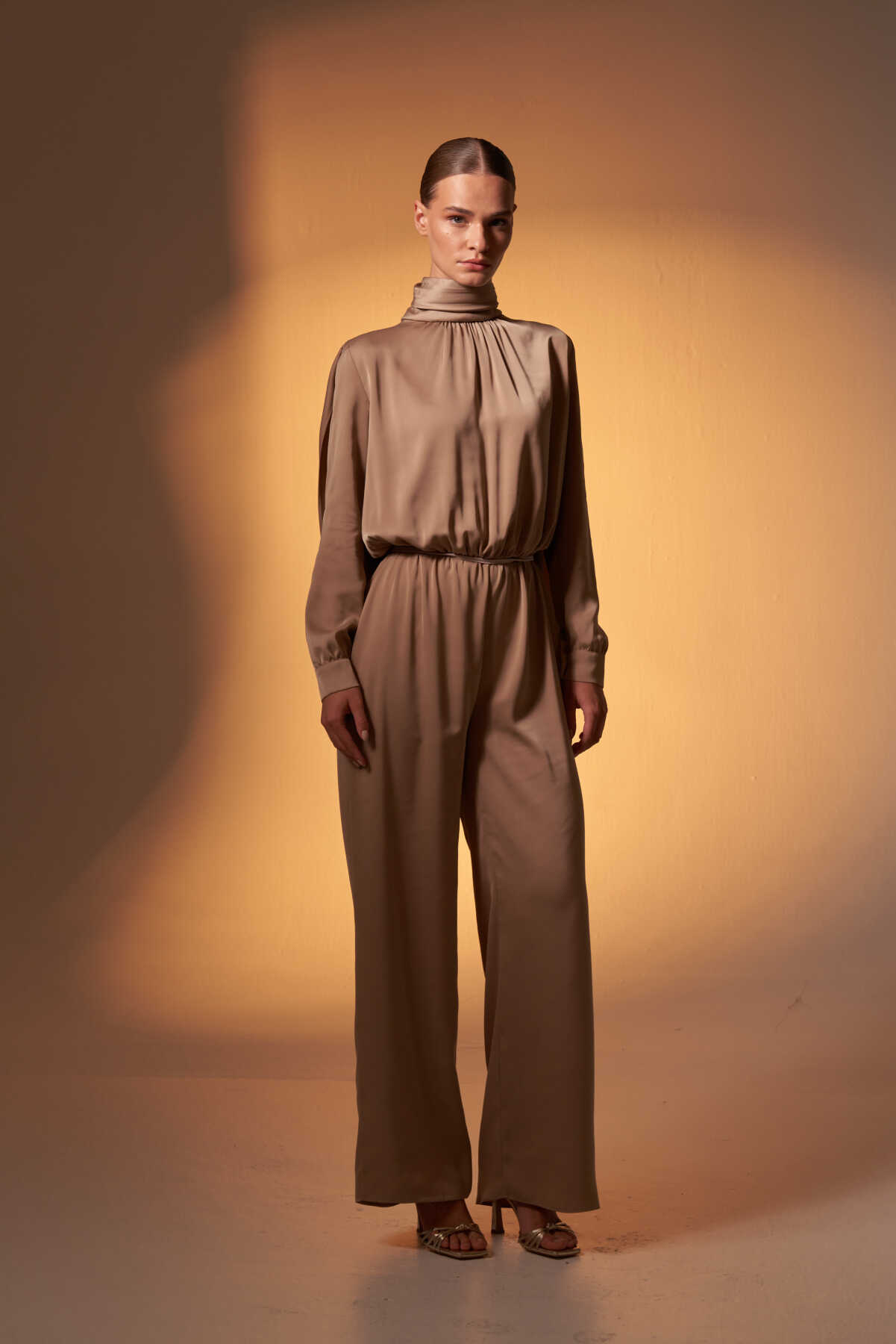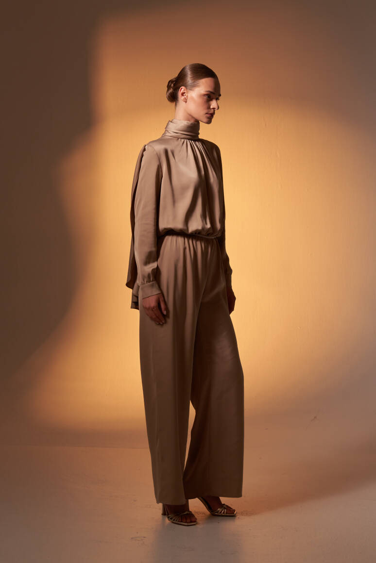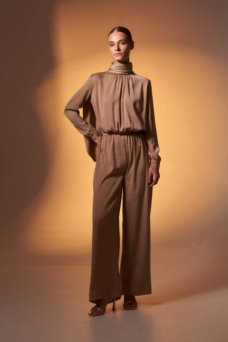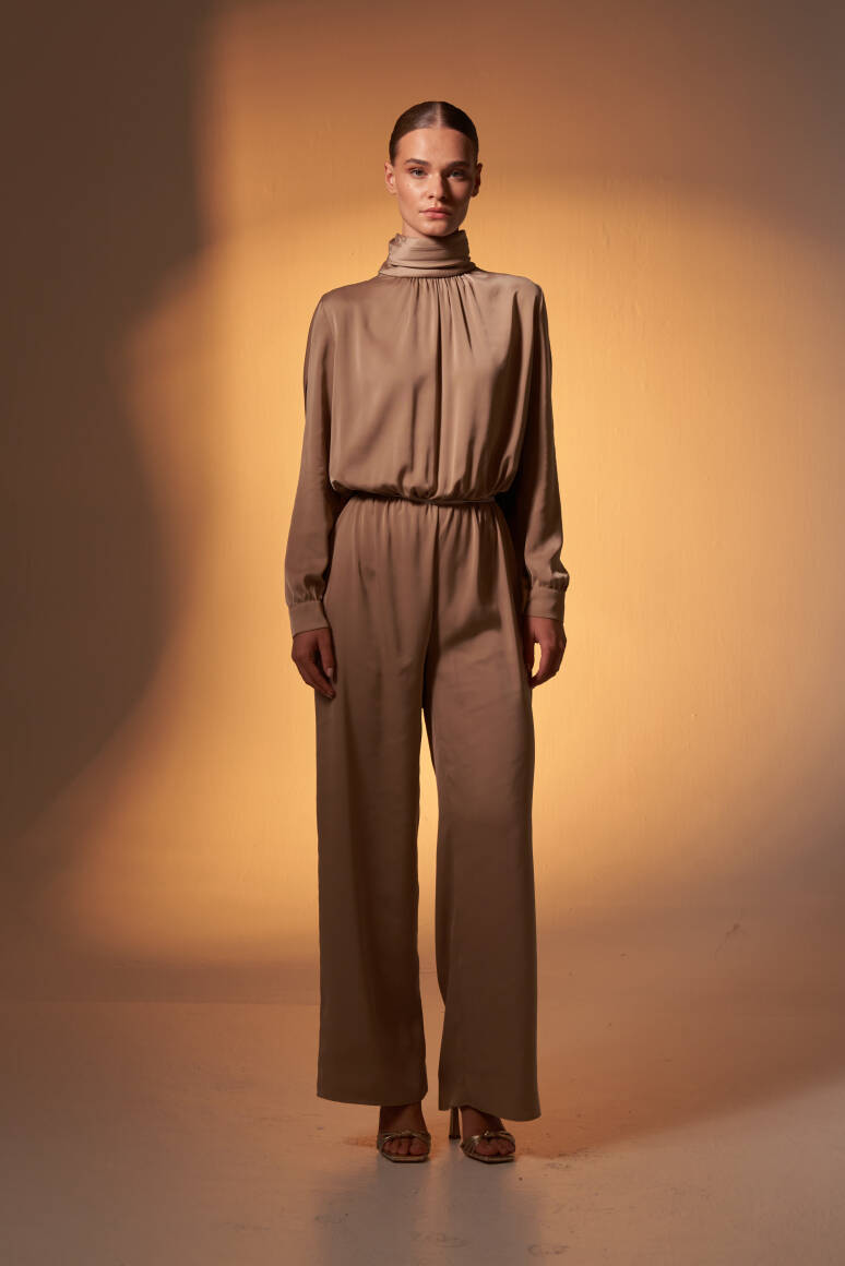 Pelerinli Saten Abiye Tulum Vizon - 1