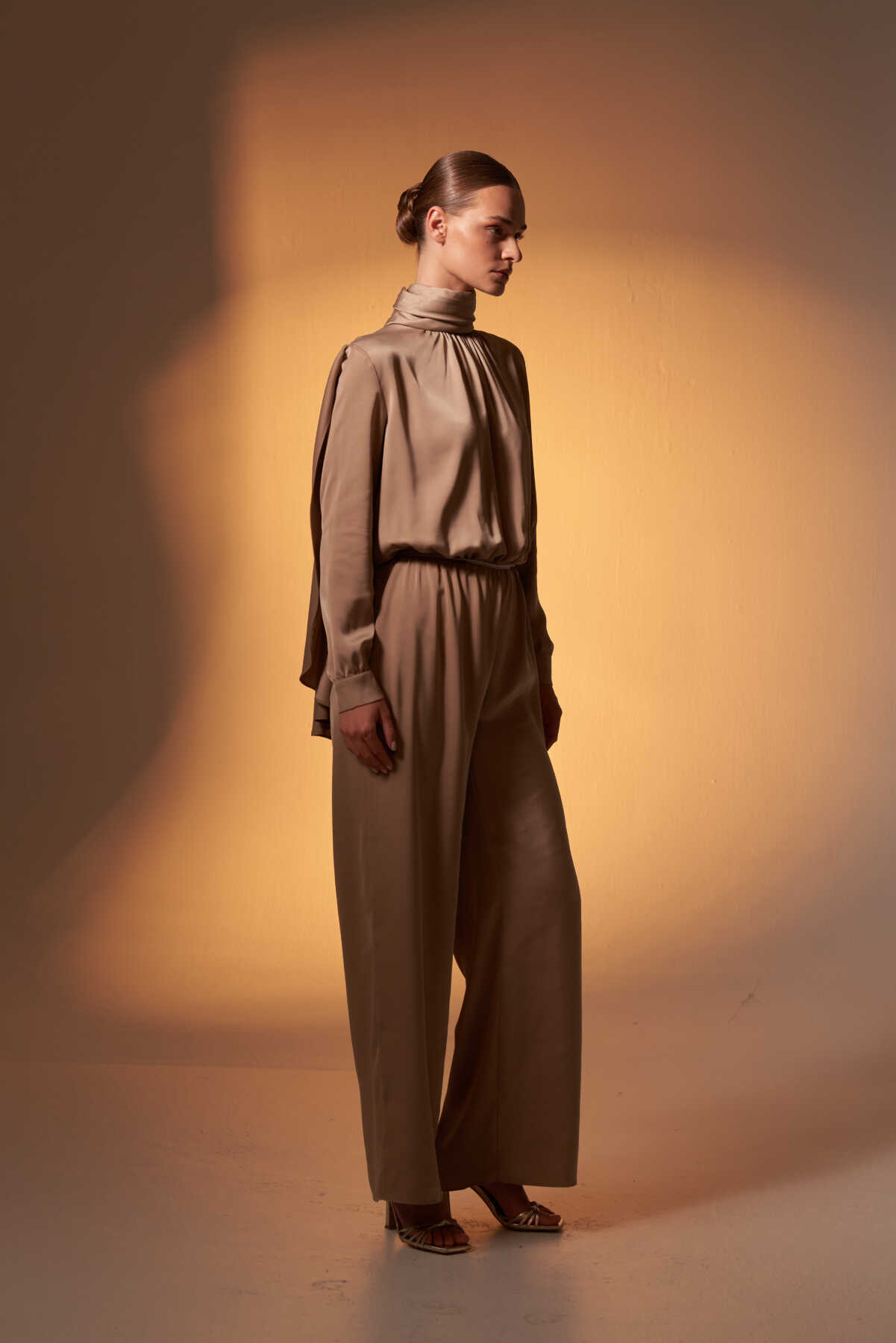 Pelerinli Saten Abiye Tulum Vizon - 5