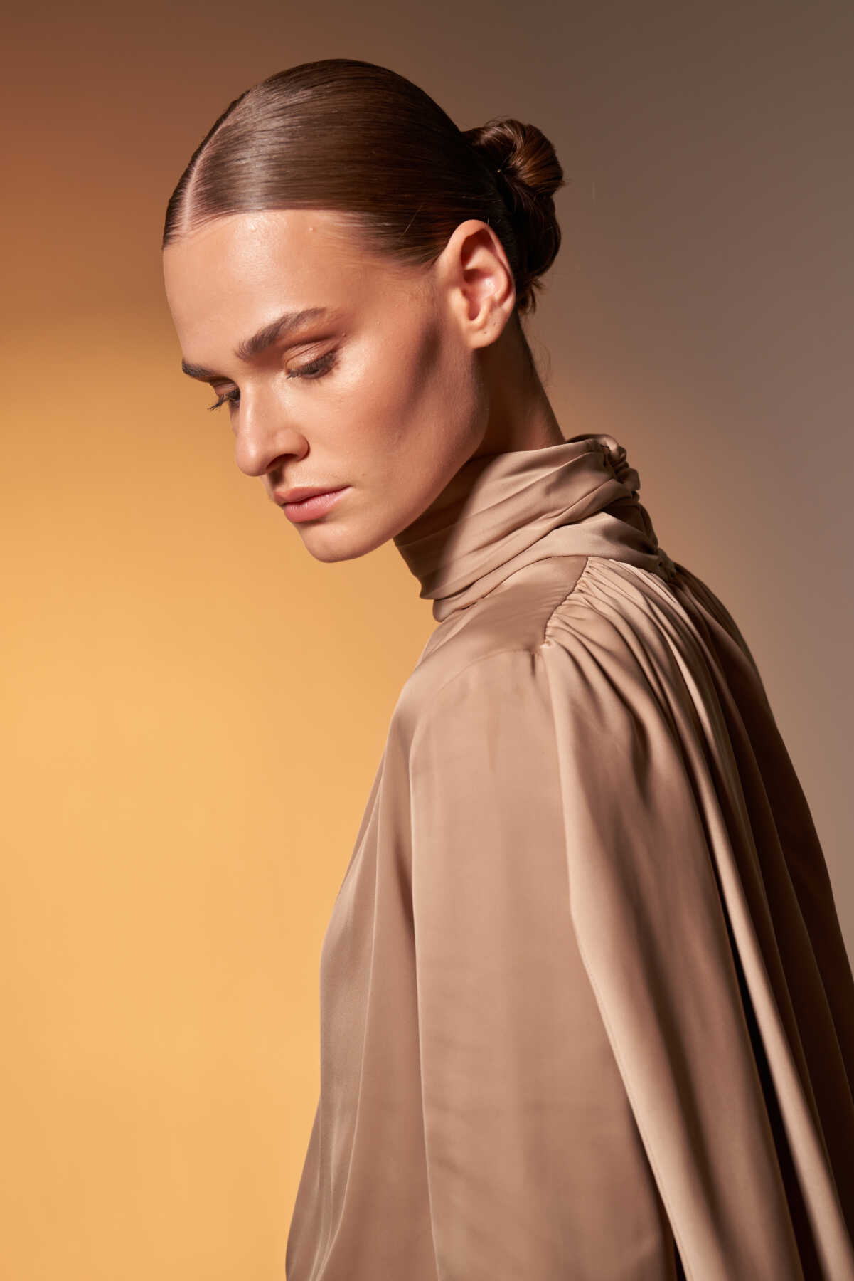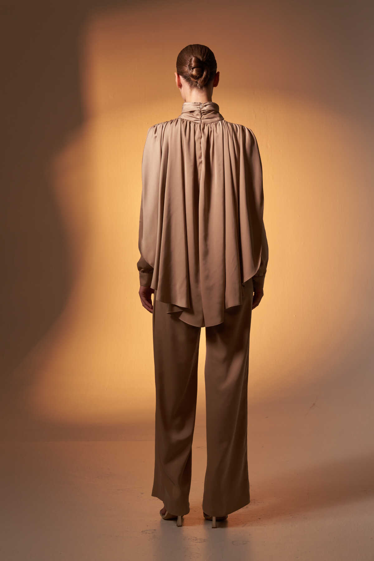 Pelerinli Saten Abiye Tulum Vizon - 4