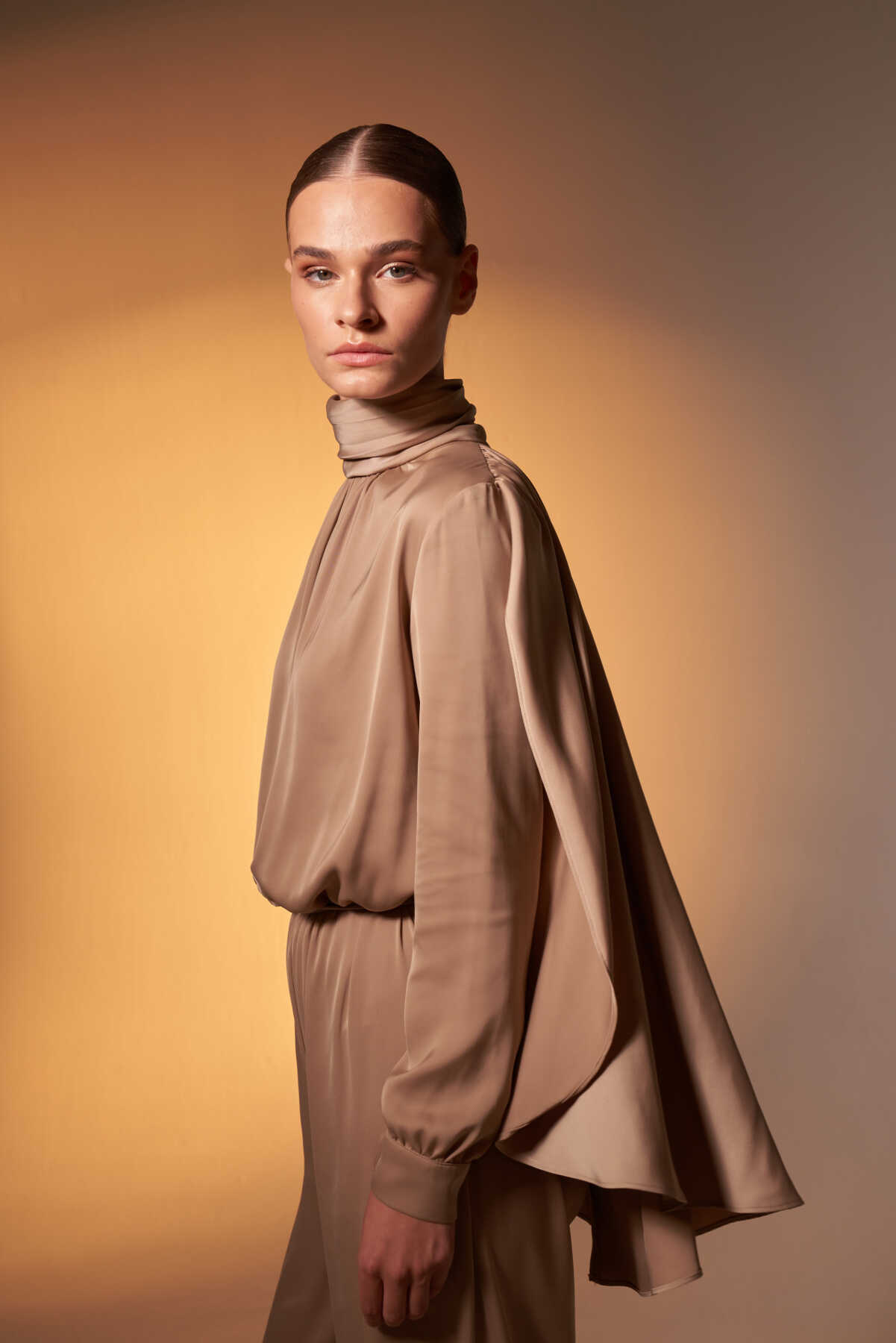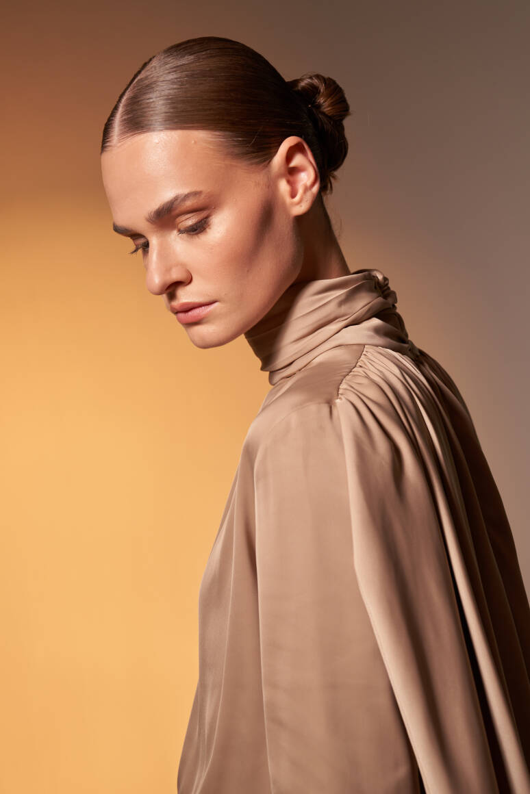 Pelerinli Saten Abiye Tulum Vizon - 10