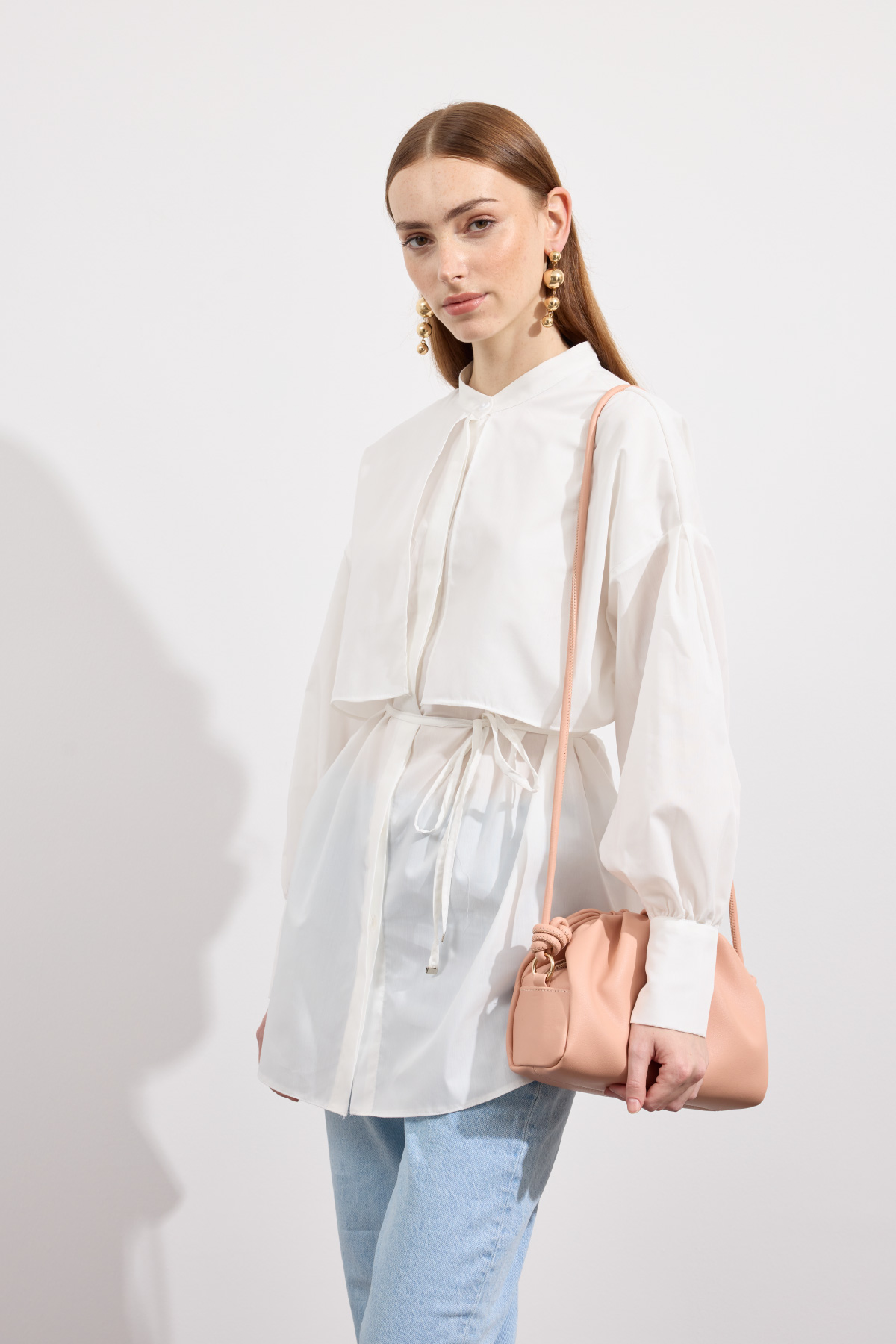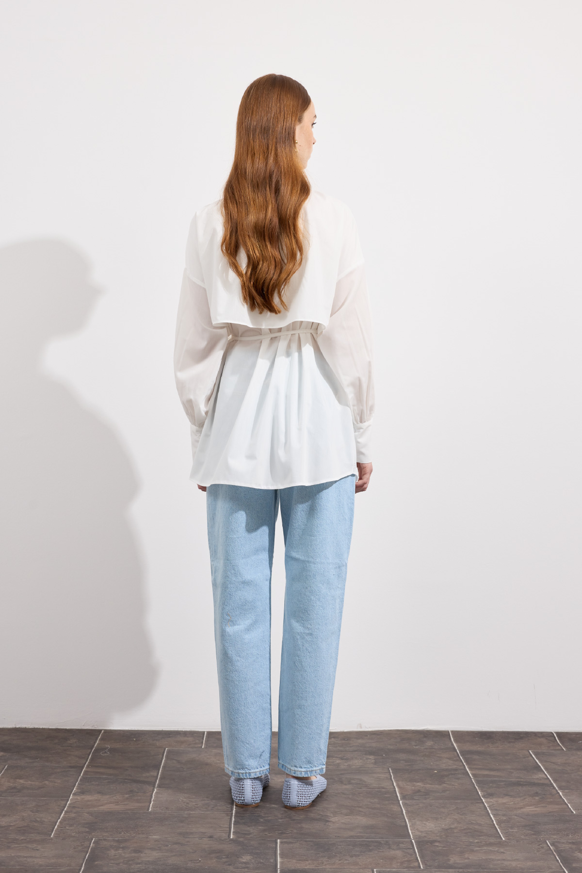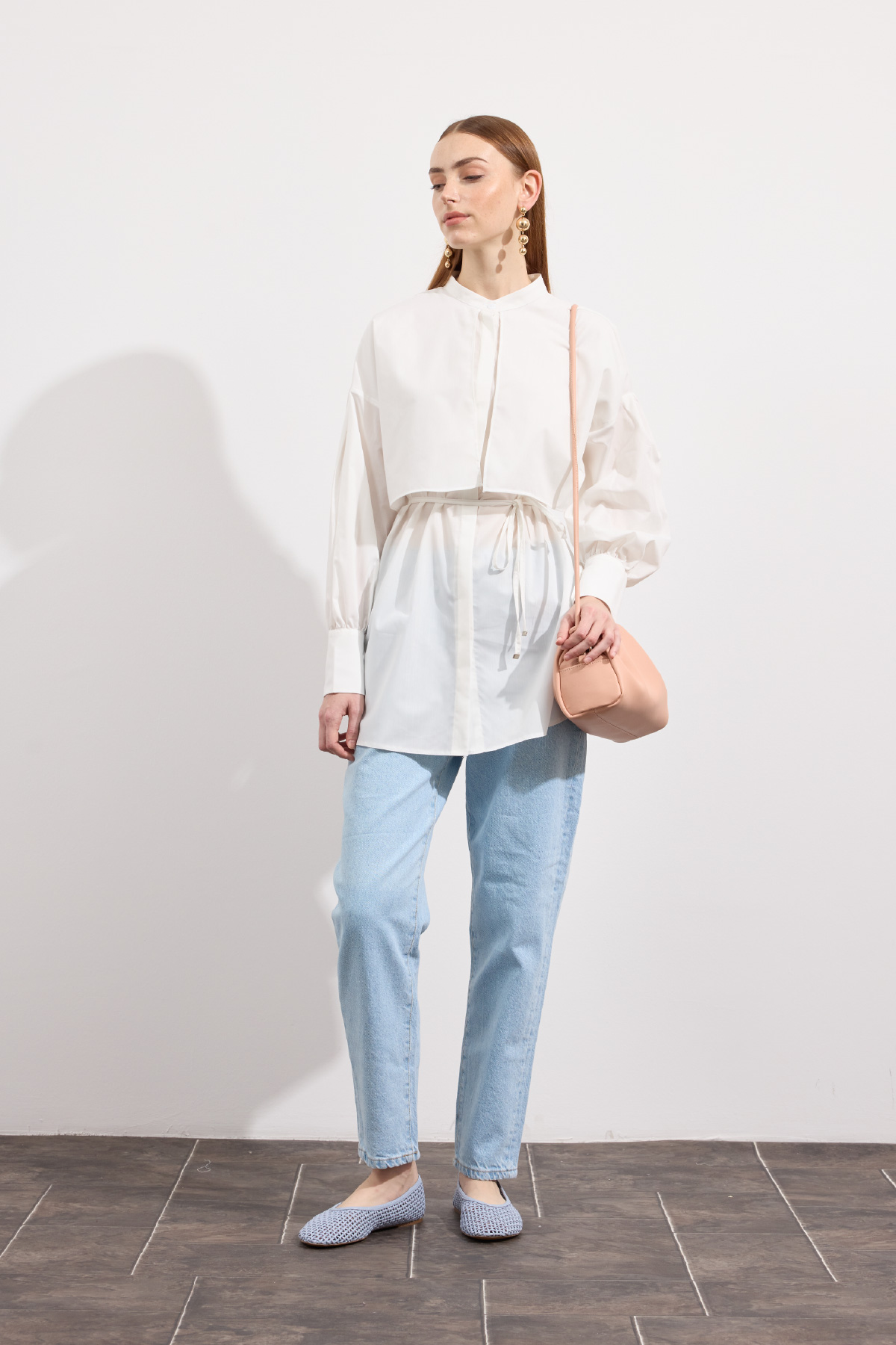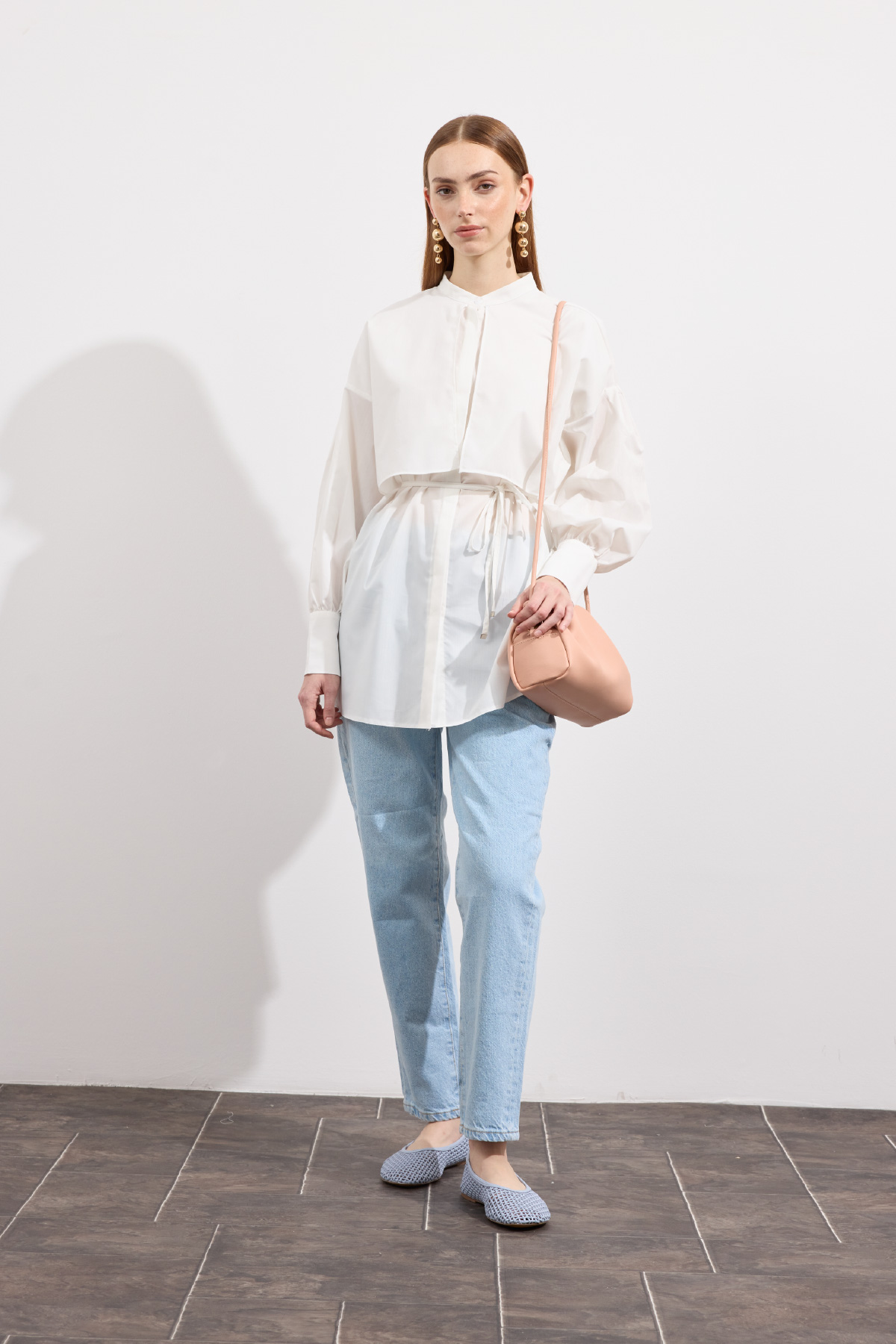 Rüzgarlık detaylı, spor görünümlü, rahat kesim, ip biye kuşak detaylı, pat kapamalı düğmeli, kol ucu manşetli düğmeli.
