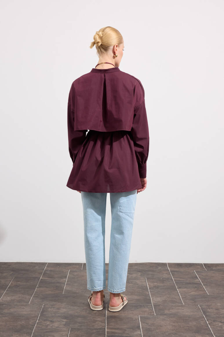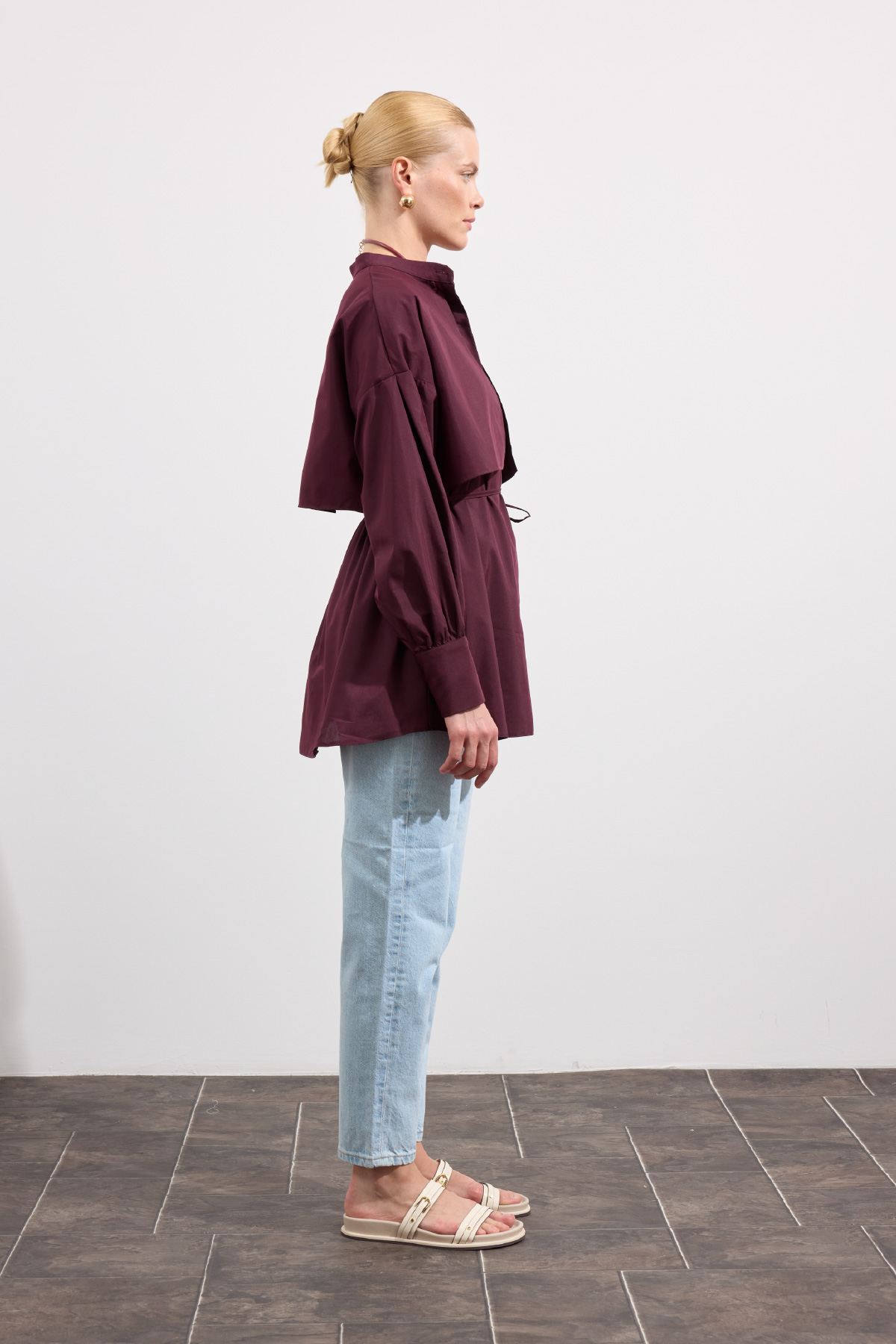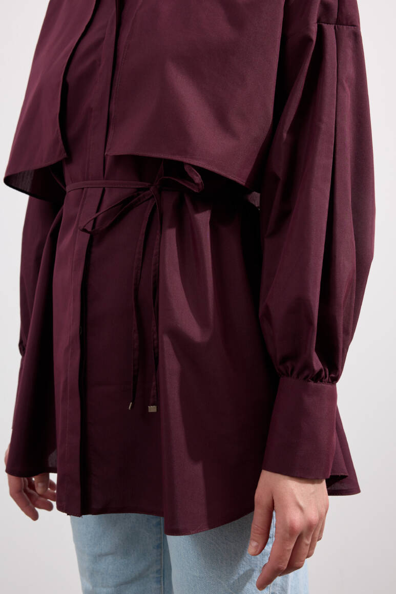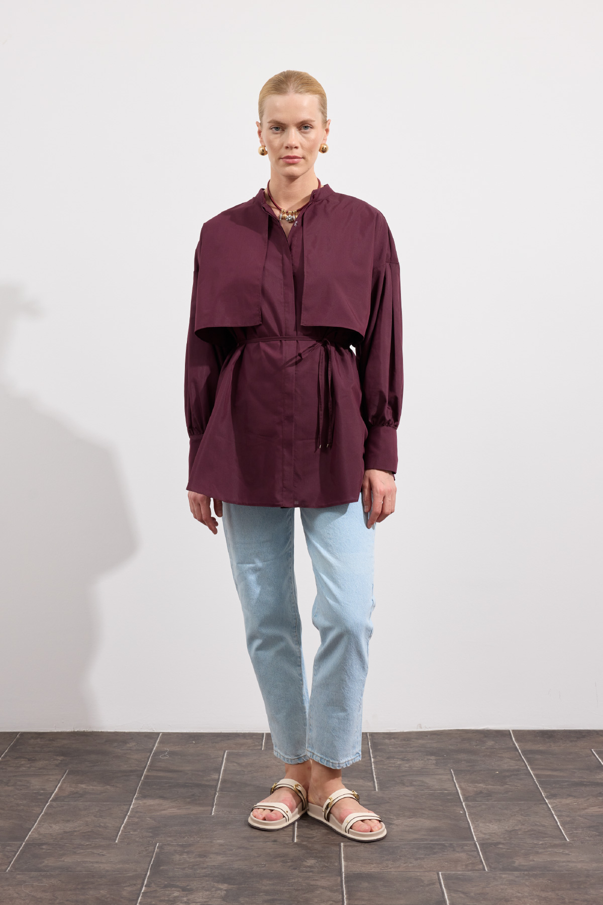 Rüzgarlık detaylı, spor görünümlü, rahat kesim, ip biye kuşak detaylı, pat kapamalı düğmeli, kol ucu manşetli düğmeli.