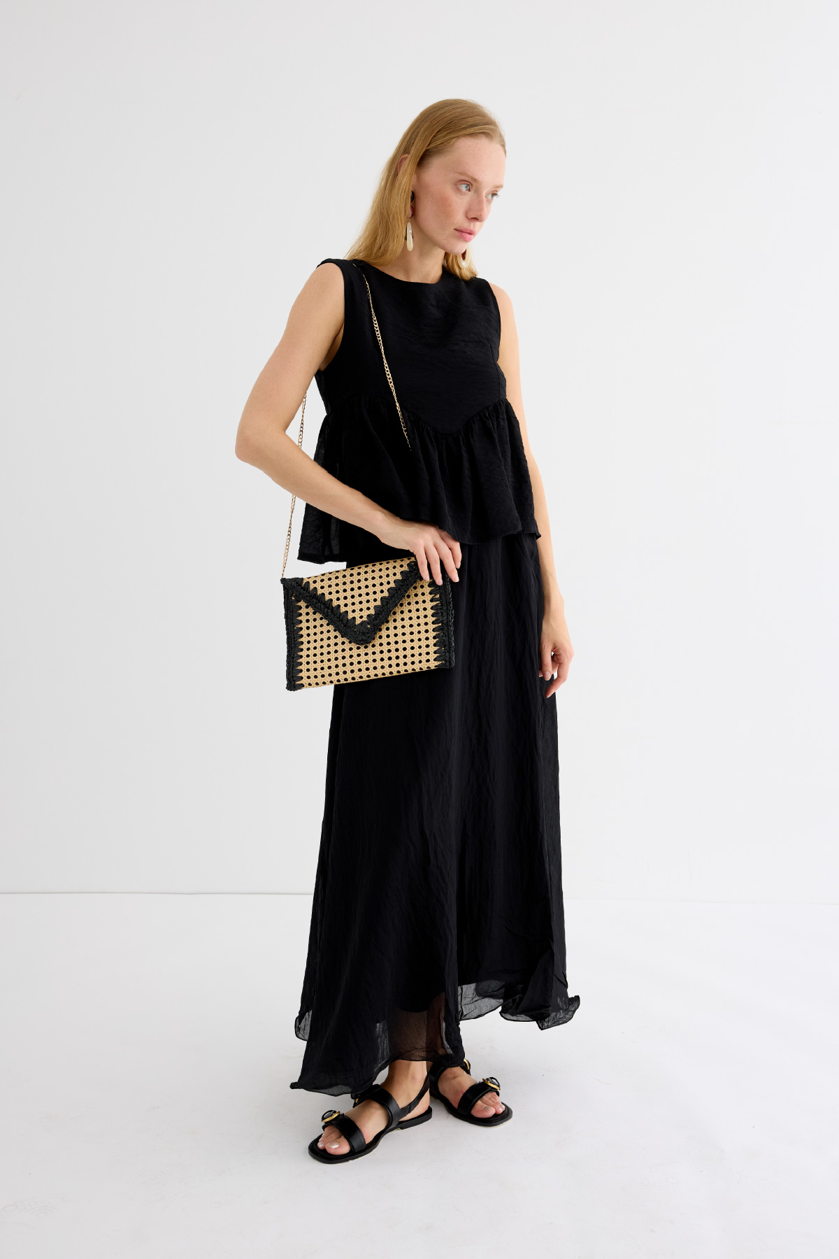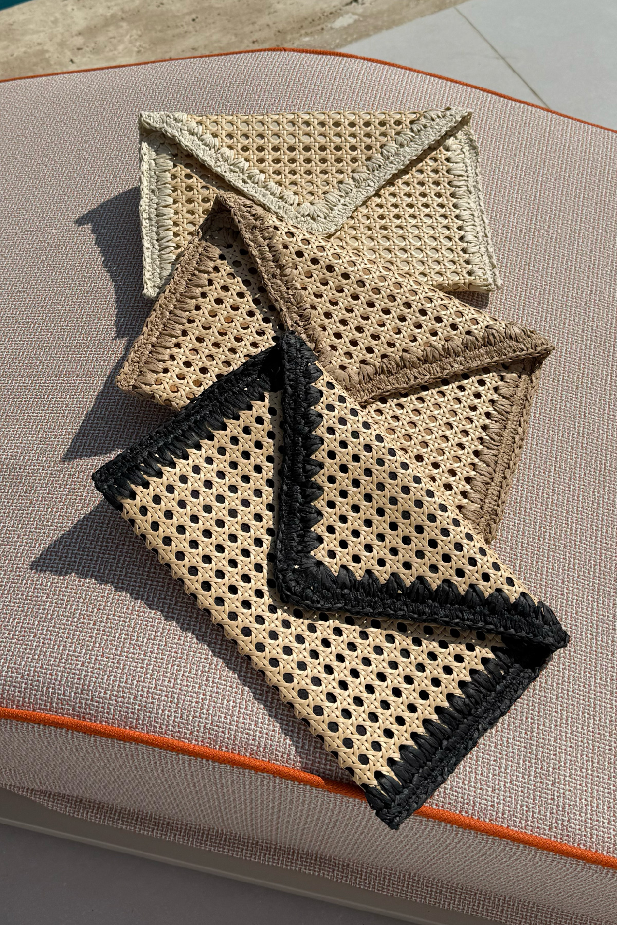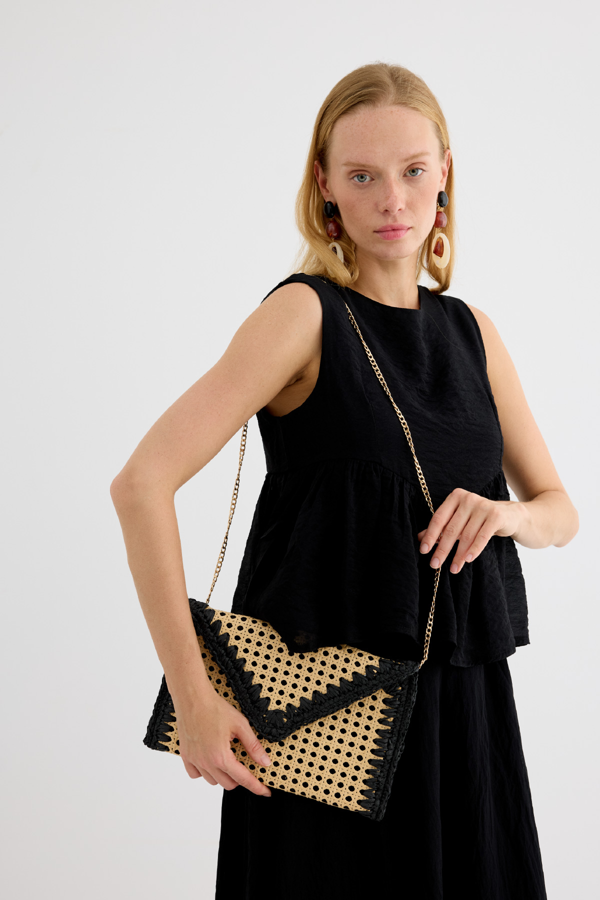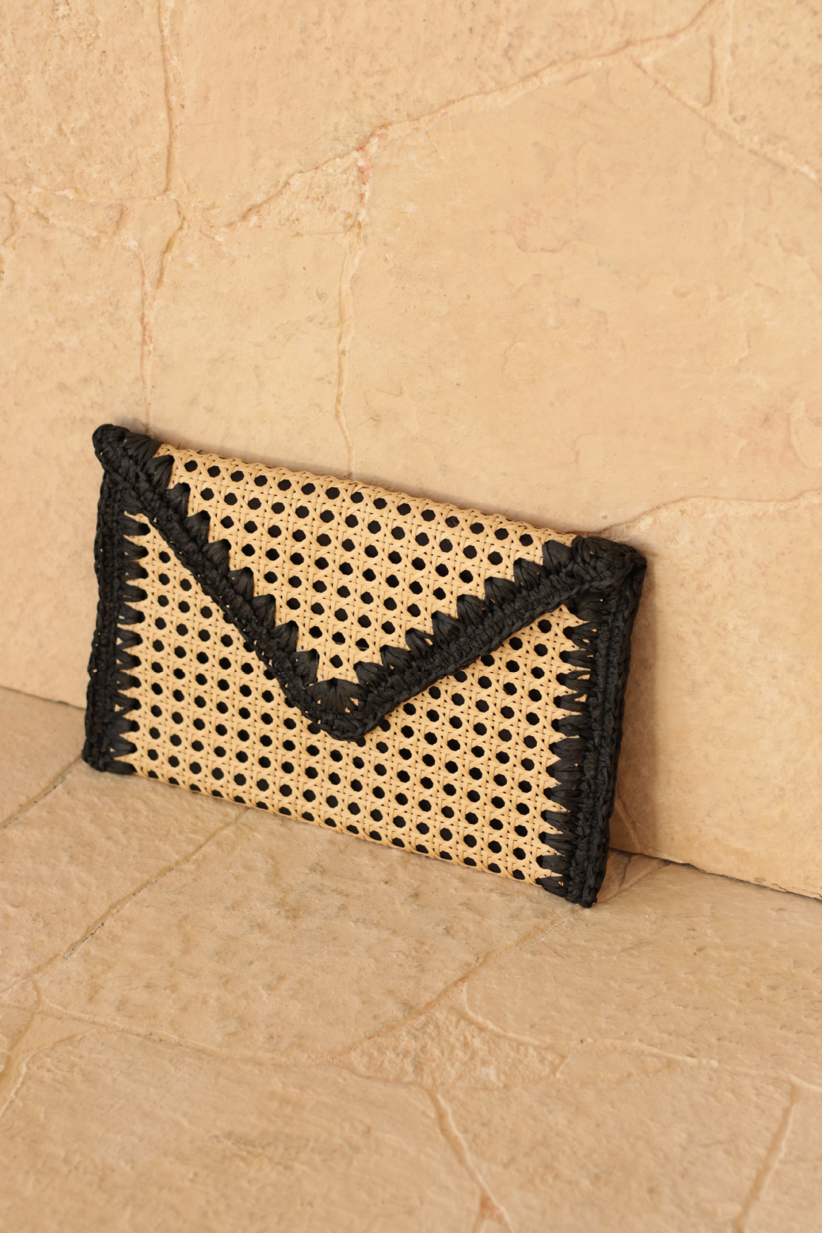 Bohem şıklığı ve doğallığı bir araya getiren bu hasır zarf çanta, yaz kombinlerinize zarif ve sade bir dokunuş katıyor. El işçiliğiyle hazırlanmış örgü detayları ve doğal malzemesiyle hem plaj stiline hem şehir şıklığına uyum sağlar. Minimal tasarımı sayesinde hem gündüz hem gece kullanımına uygundur.