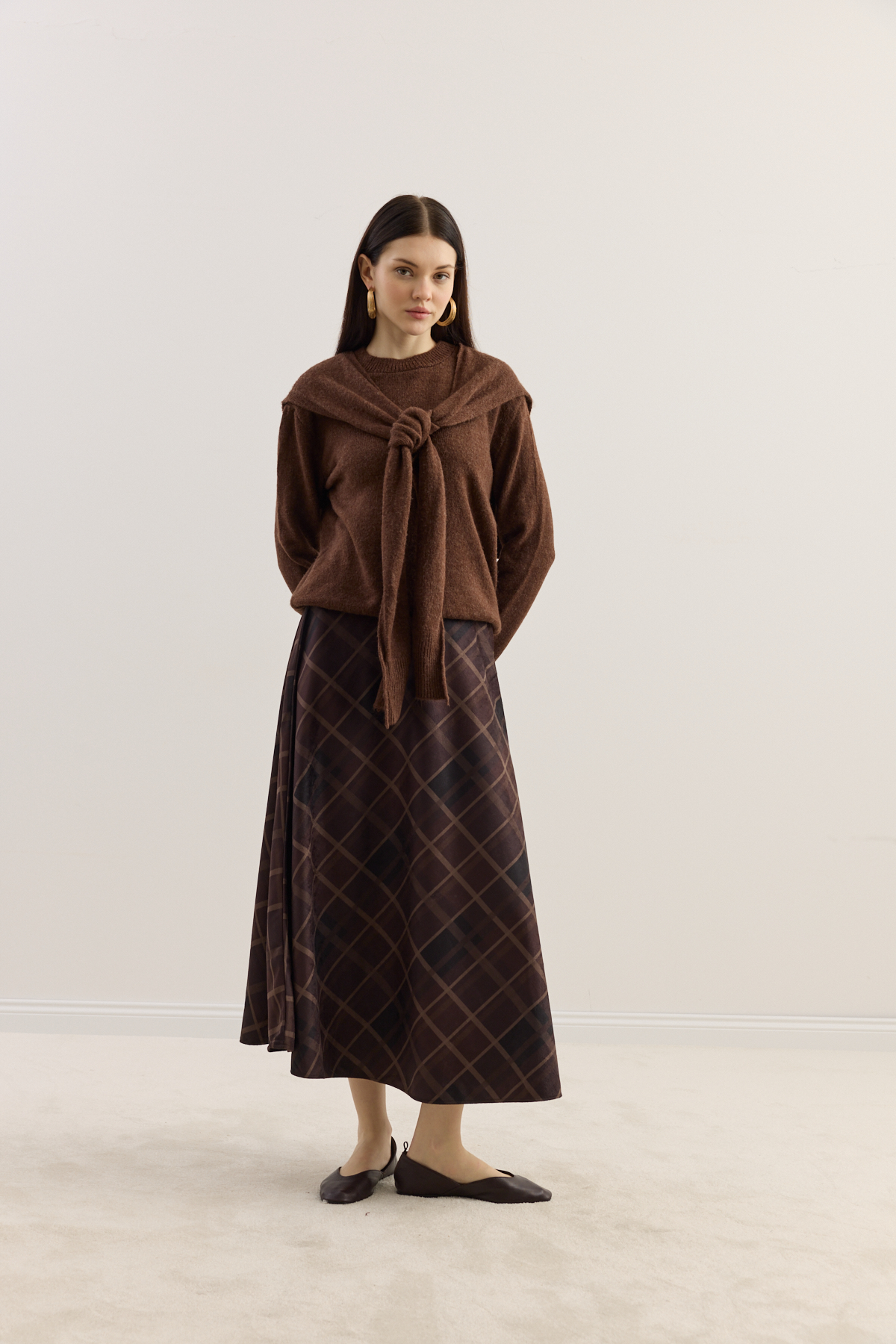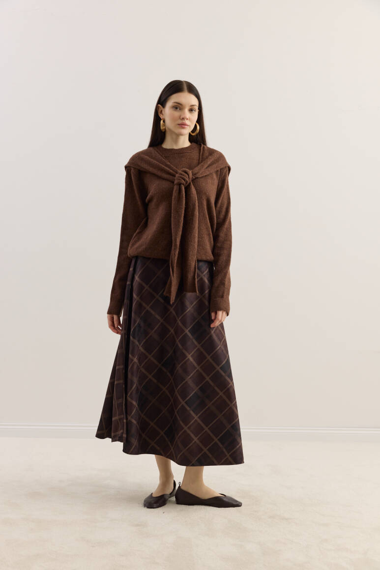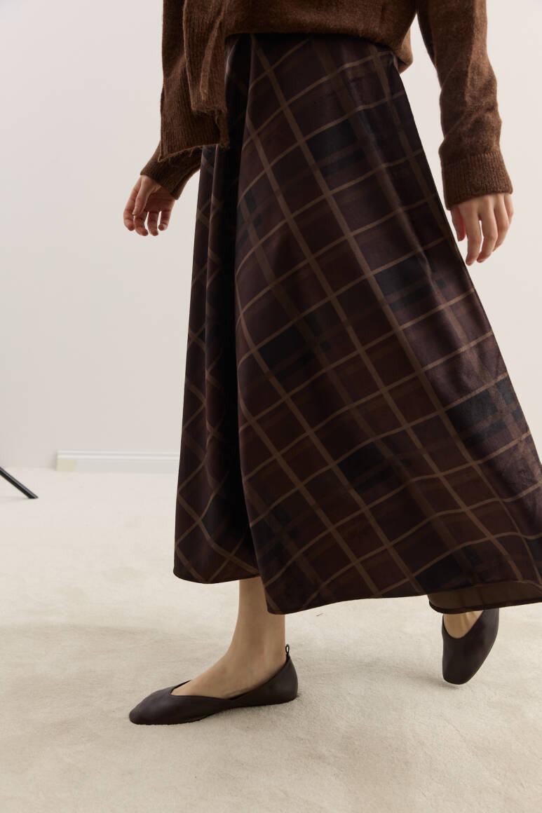 Zamansız silueti modern dokunuşlarla buluşturan etek, yumuşak dokulu süet kumaşıyla gün boyu konfor sunar. Akışkan formu ve zarif desen yapısı sayesinde hem günlük kombinlerde hem de şık davetlerde rahatlıkla tercih edilebilir.