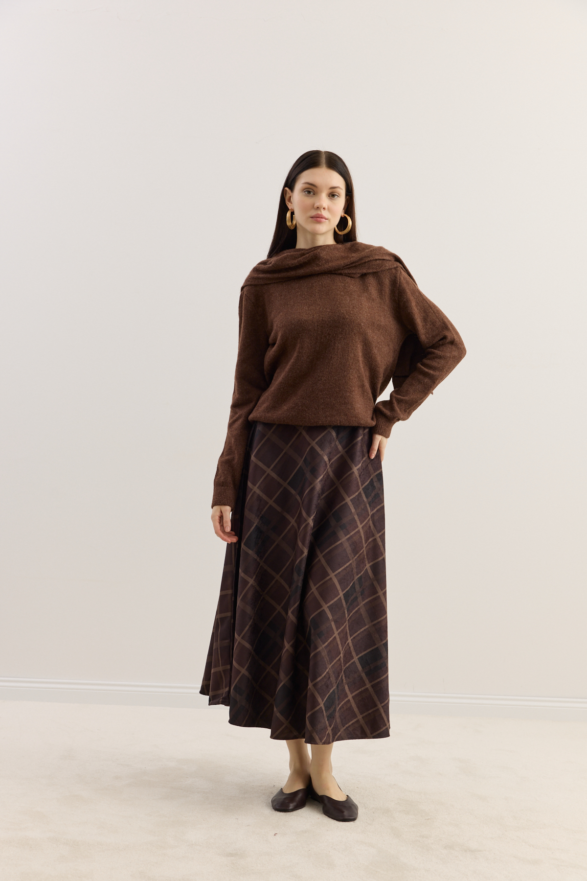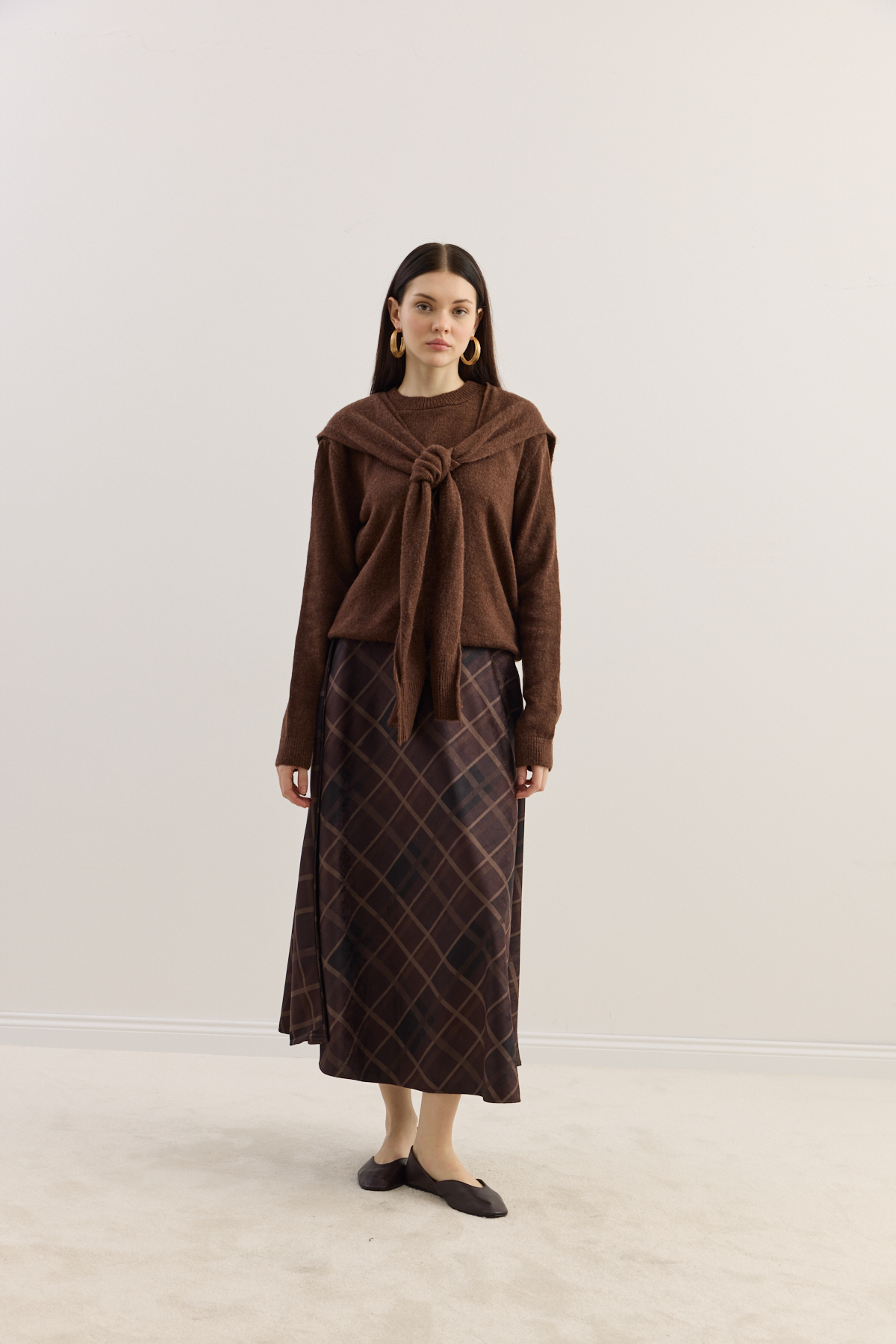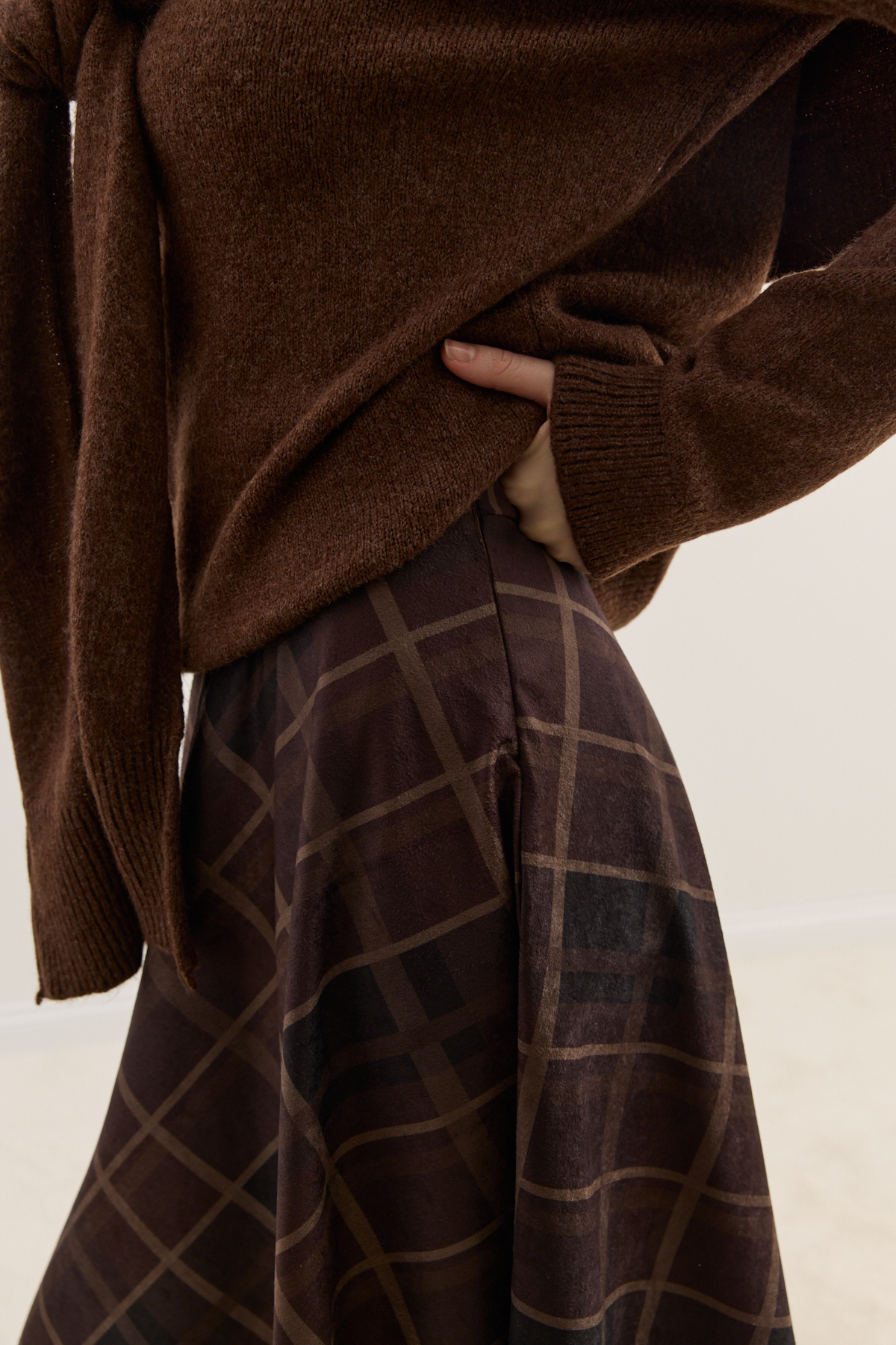 Zamansız silueti modern dokunuşlarla buluşturan etek, yumuşak dokulu süet kumaşıyla gün boyu konfor sunar. Akışkan formu ve zarif desen yapısı sayesinde hem günlük kombinlerde hem de şık davetlerde rahatlıkla tercih edilebilir.