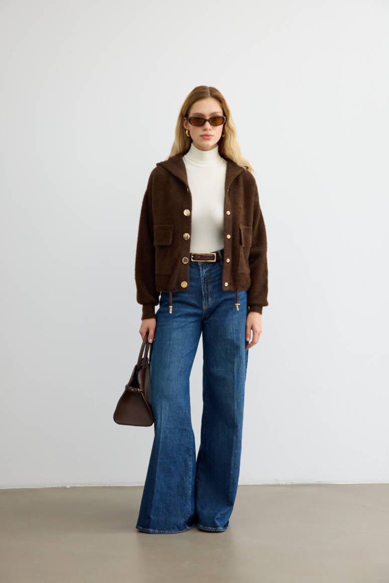 Tüylü Triko Bomber Acı Kahve - 1