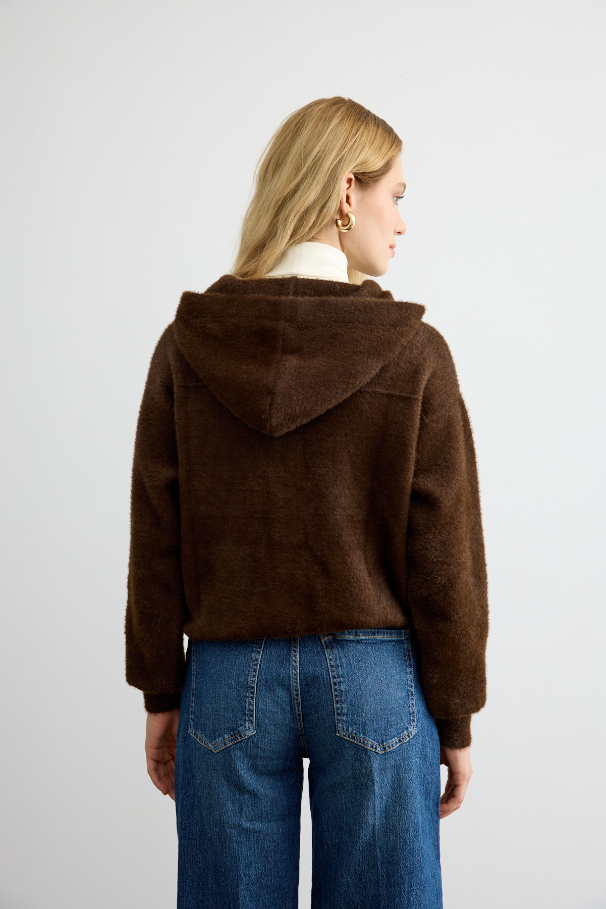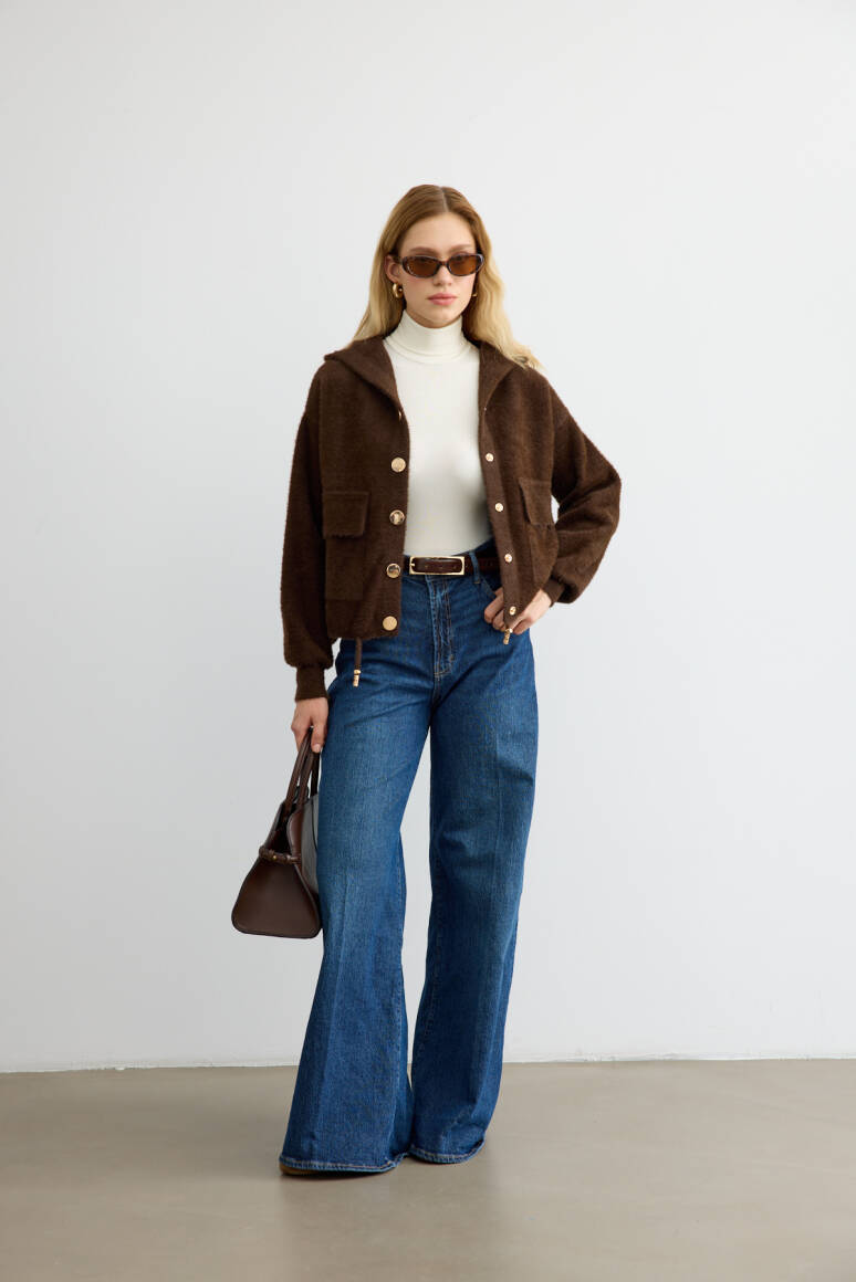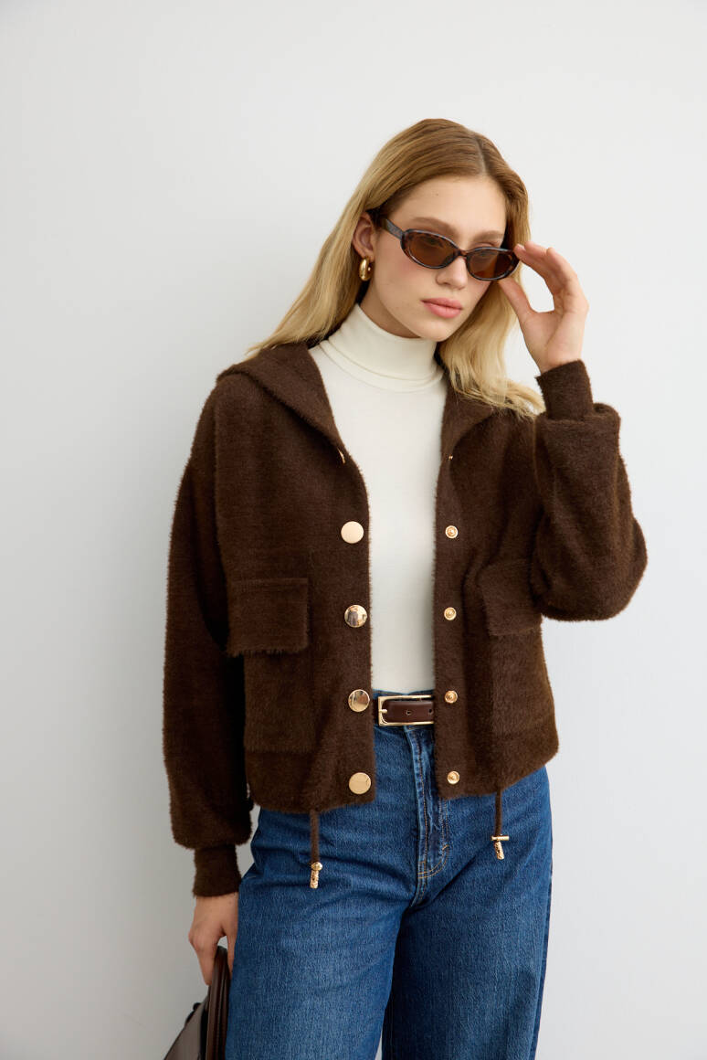 Tüylü Triko Bomber Acı Kahve - 8