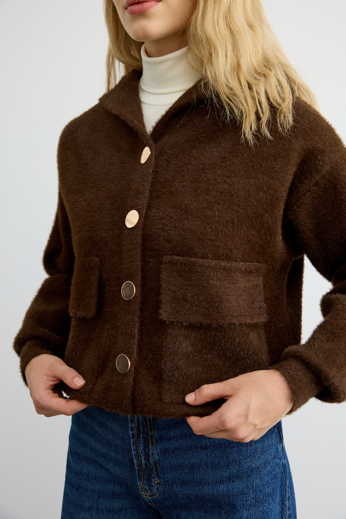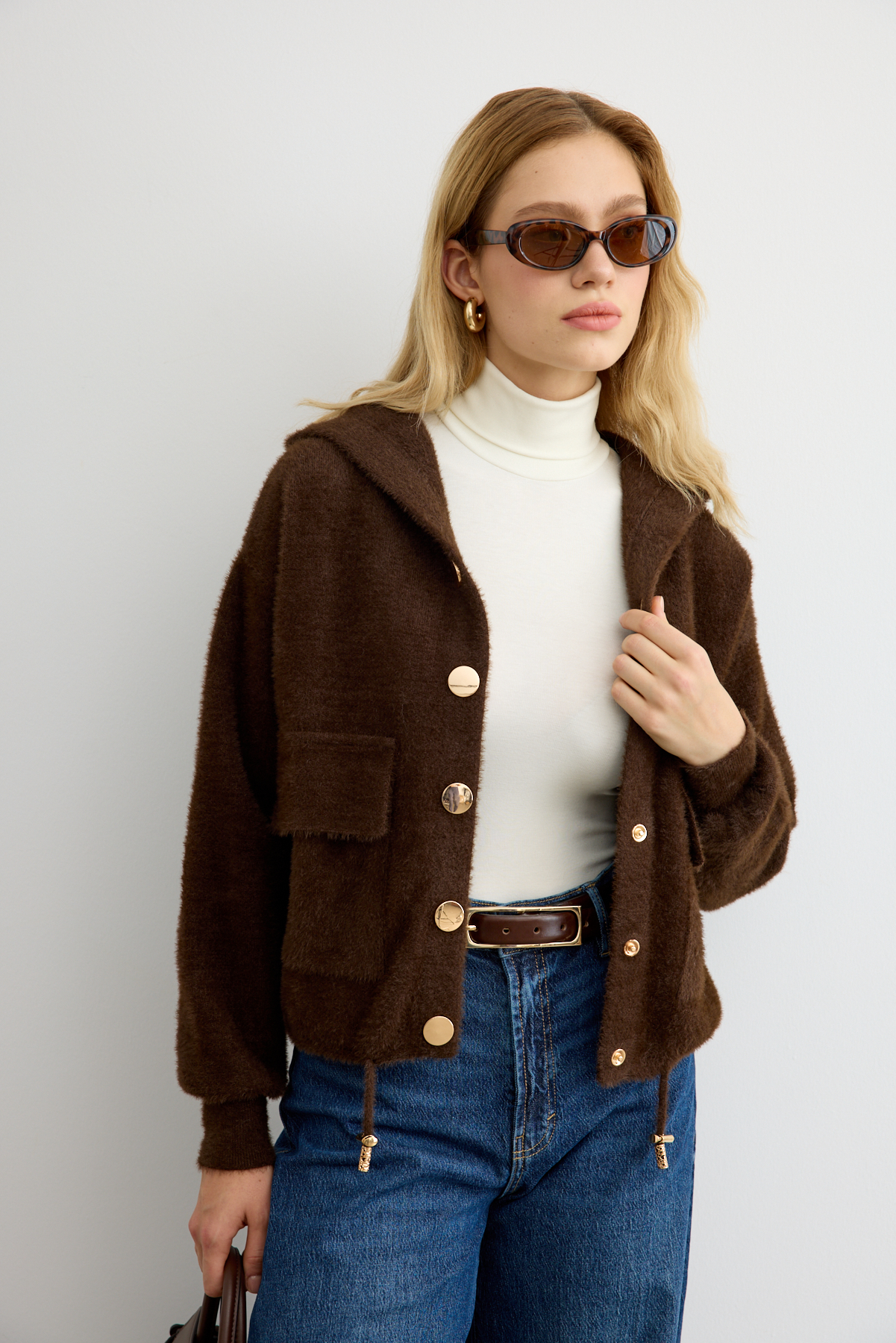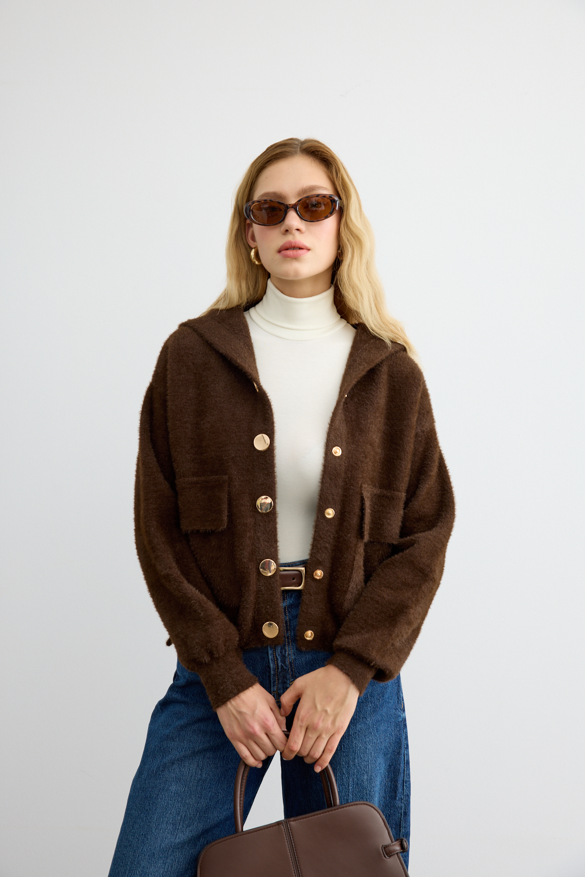 Tüylü Triko Bomber Acı Kahve - 8
