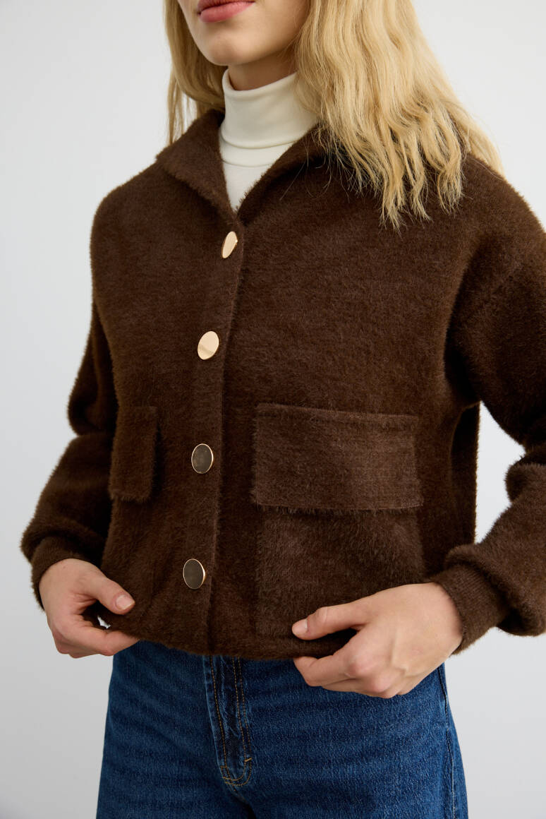Tüylü Triko Bomber Acı Kahve - 7