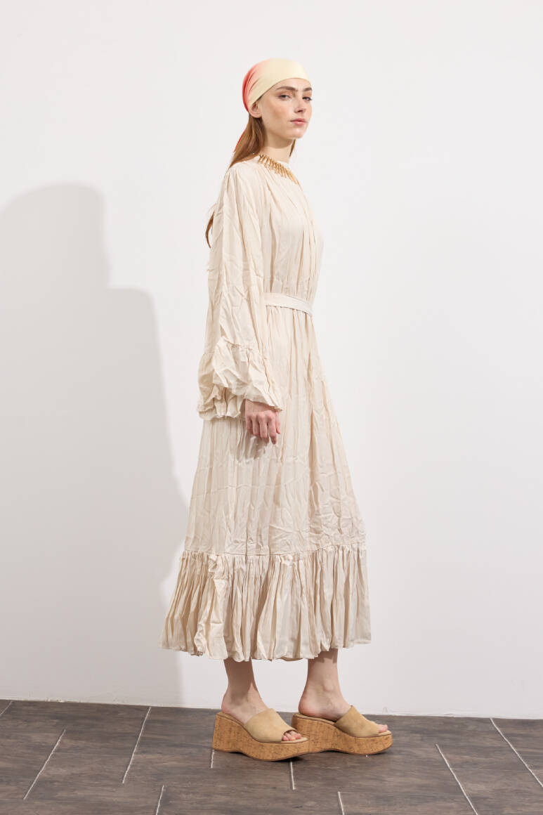 Velora Crush Saten Elbise Taş - 4