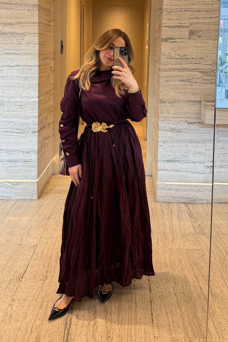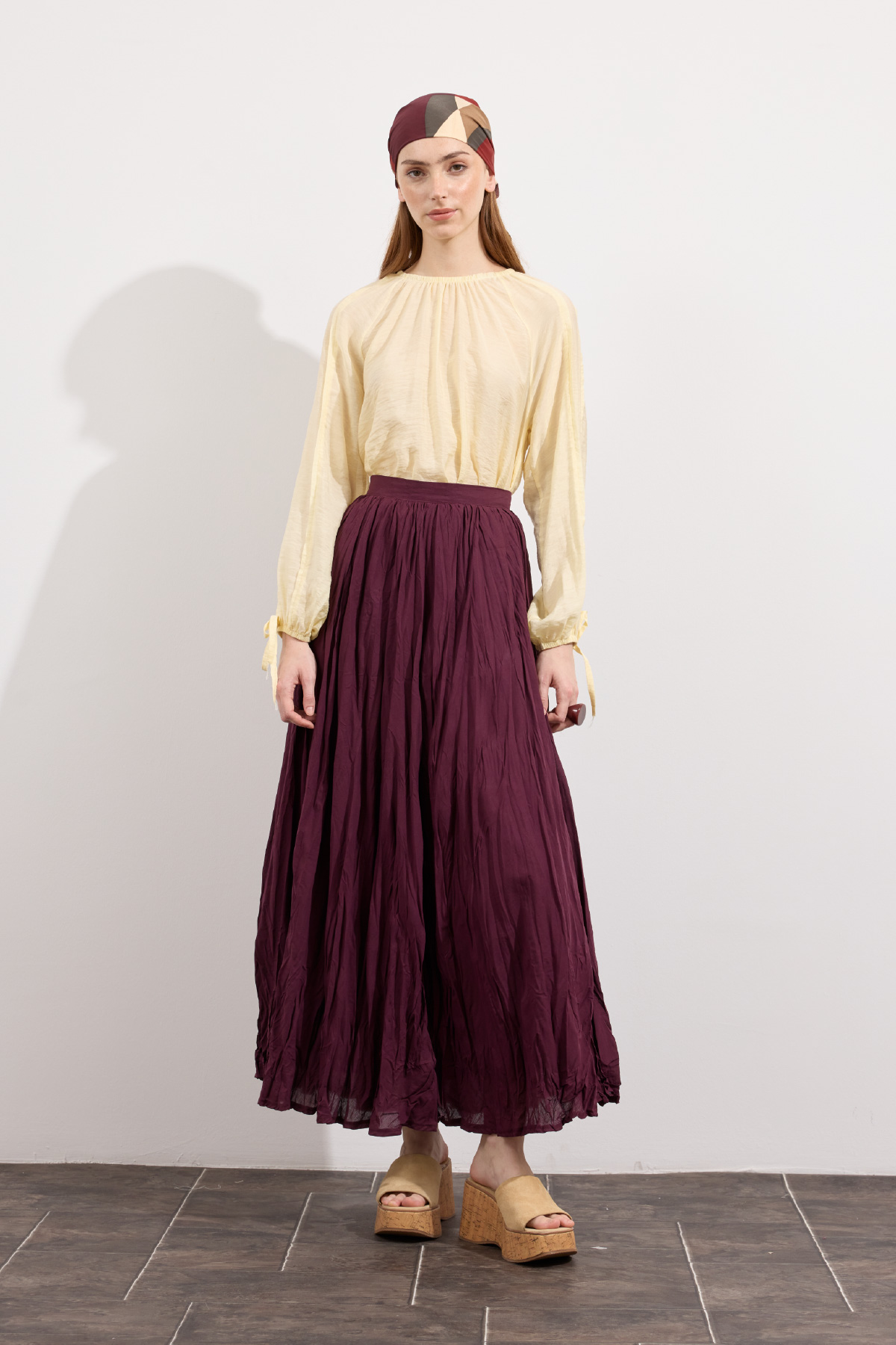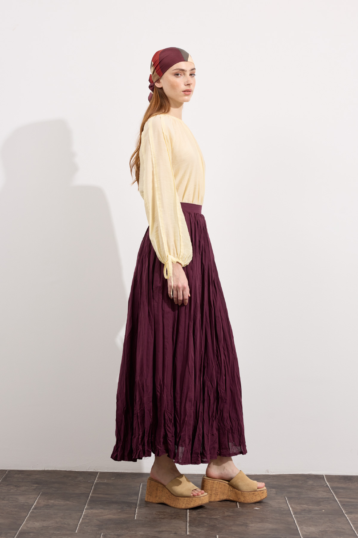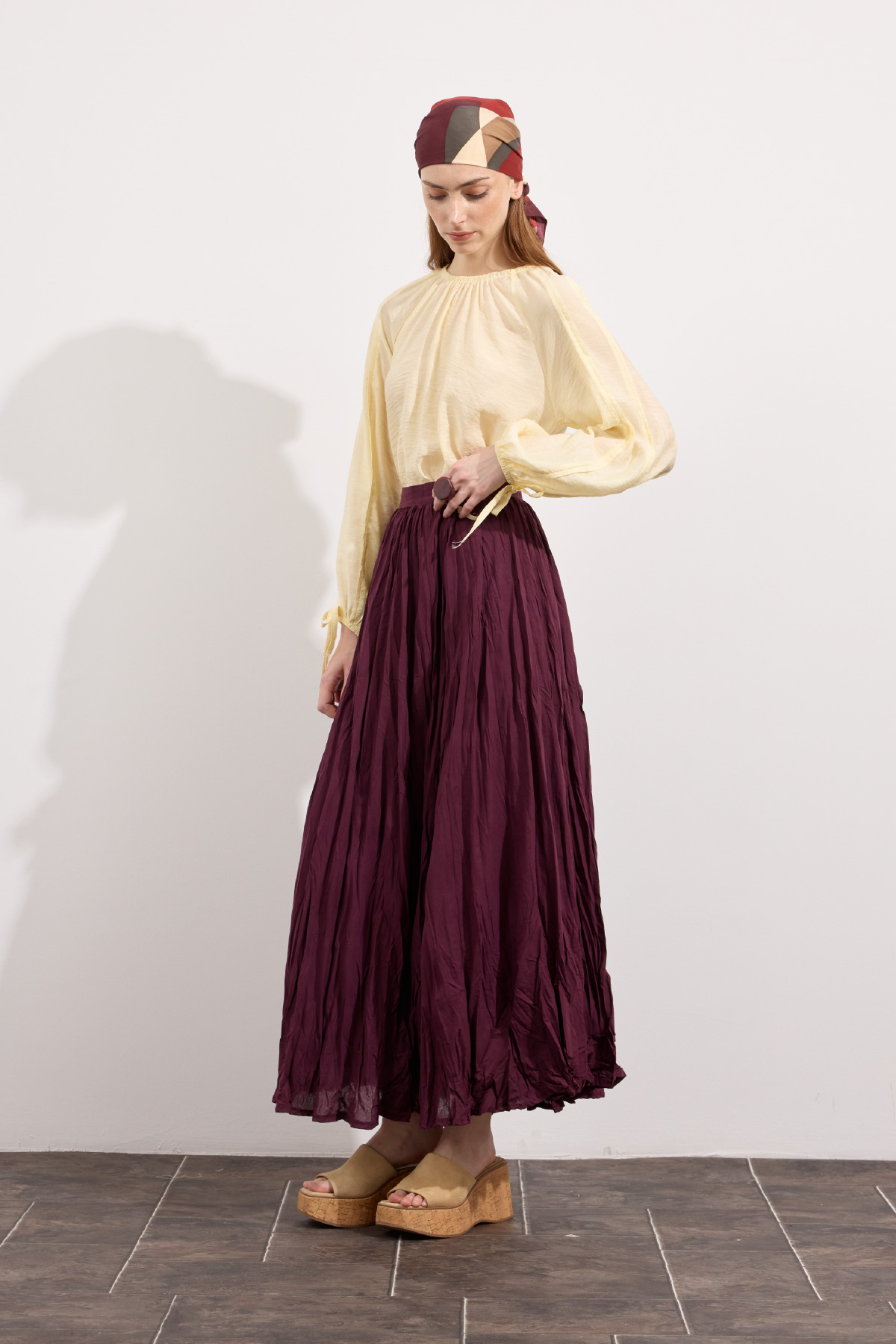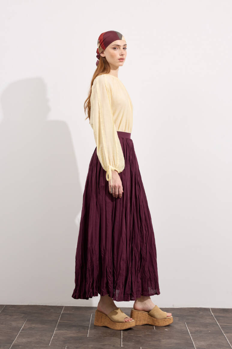 Hafif ve nefes alabilen kumaş,Fermuarlı,Kırışık efektli modern yüzeyYüksek bel tasarımı,Günlük ve özel kombinlere uyumlu