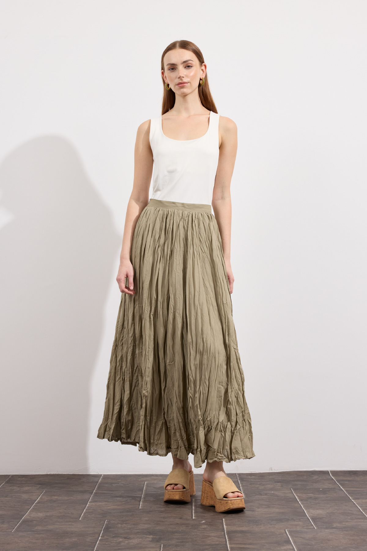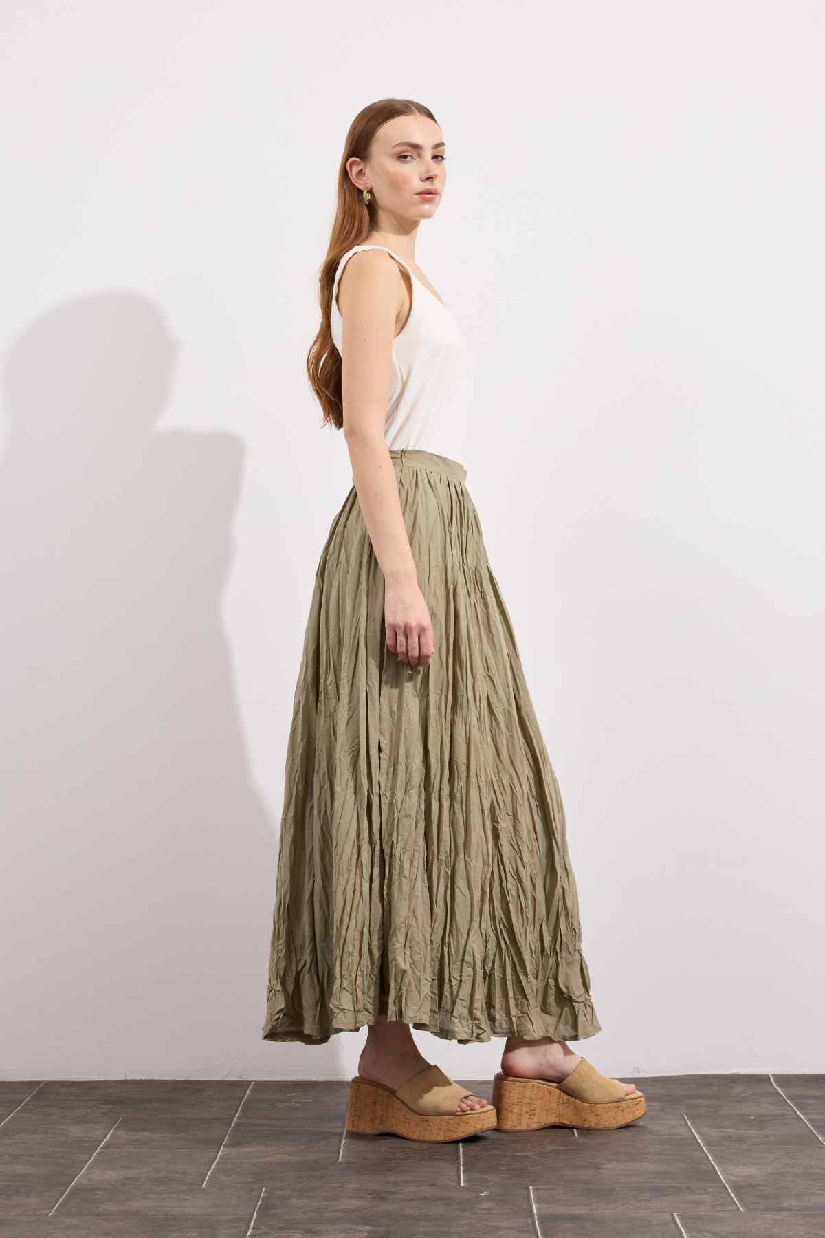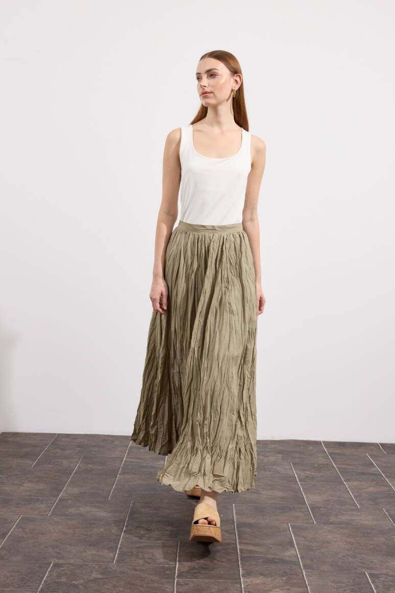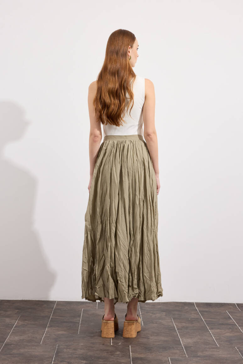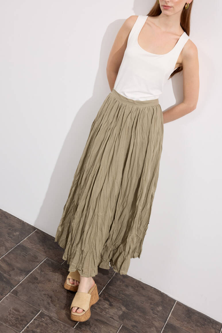 Hafif ve nefes alabilen kumaş,Fermuarlı,Kırışık efektli modern yüzeyYüksek bel tasarımı,Günlük ve özel kombinlere uyumlu