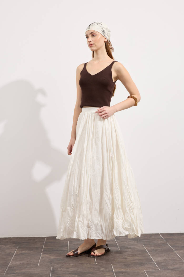 Hafif ve nefes alabilen kumaş,Fermuarlı,Kırışık efektli modern yüzeyYüksek bel tasarımı,Günlük ve özel kombinlere uyumlu
