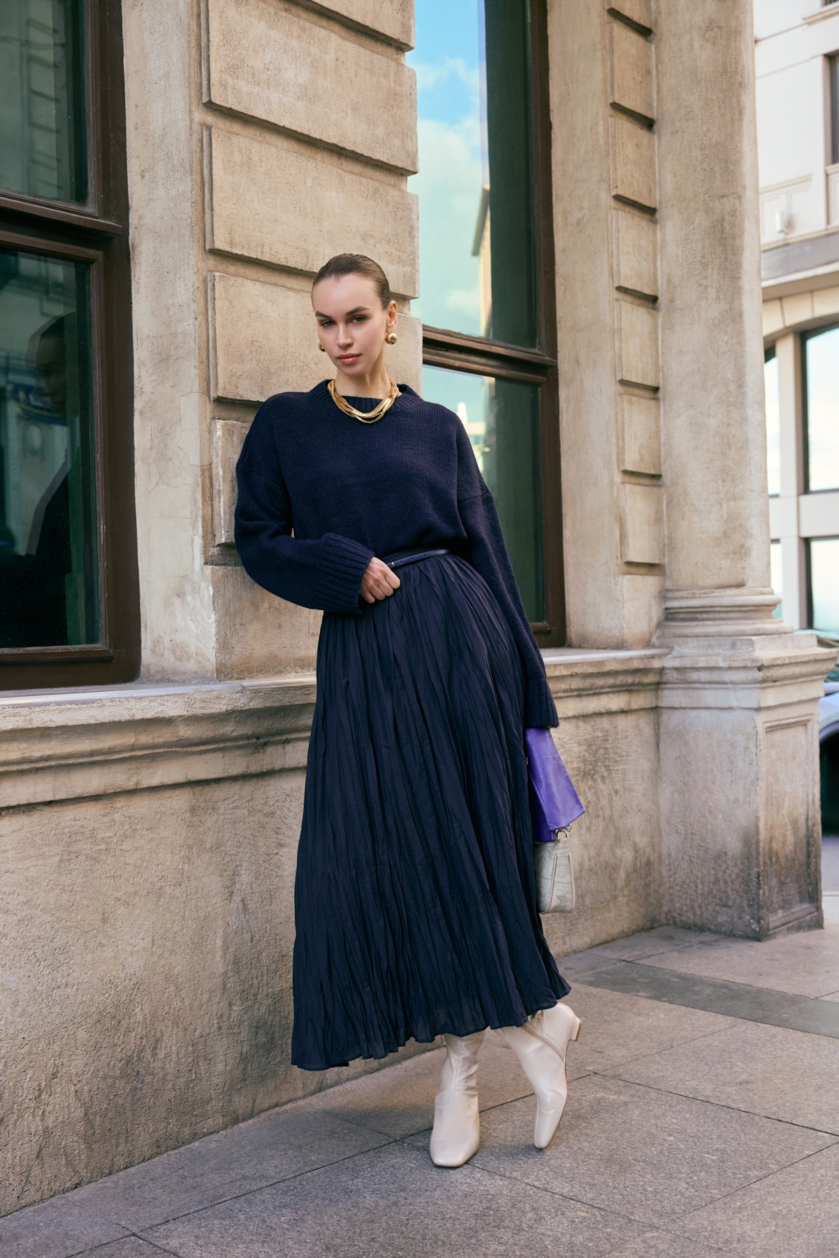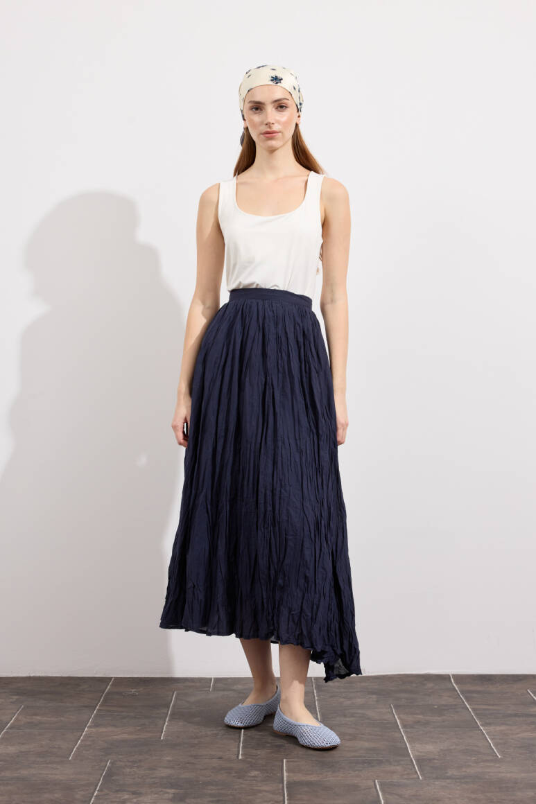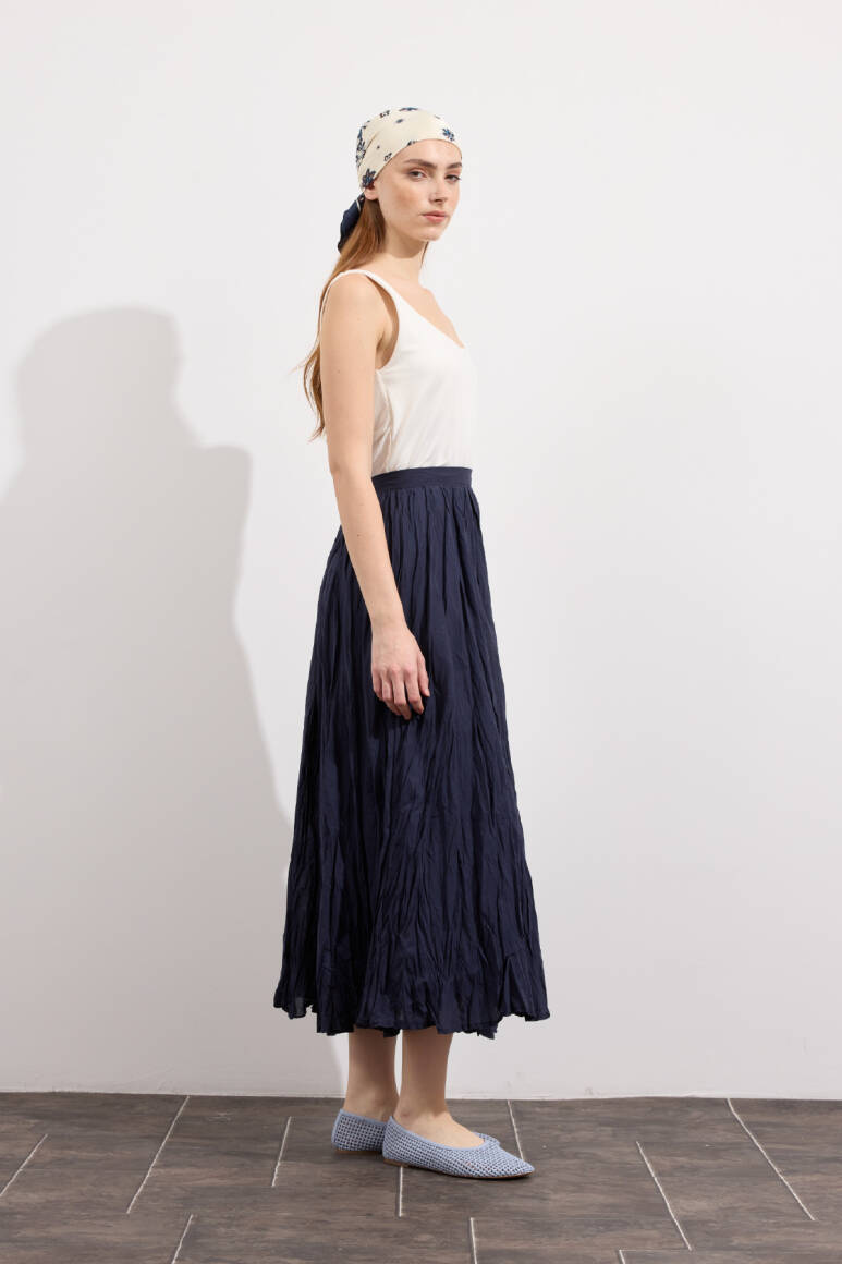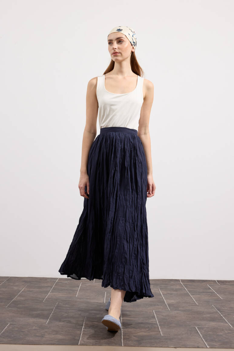 Hafif ve nefes alabilen kumaş,Fermuarlı,Kırışık efektli modern yüzeyYüksek bel tasarımı,Günlük ve özel kombinlere uyumlu