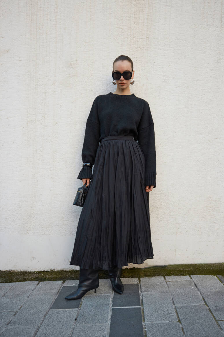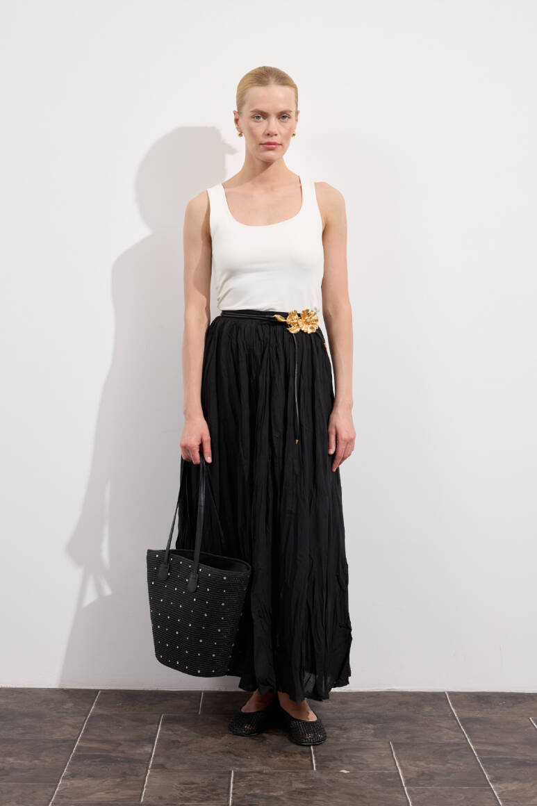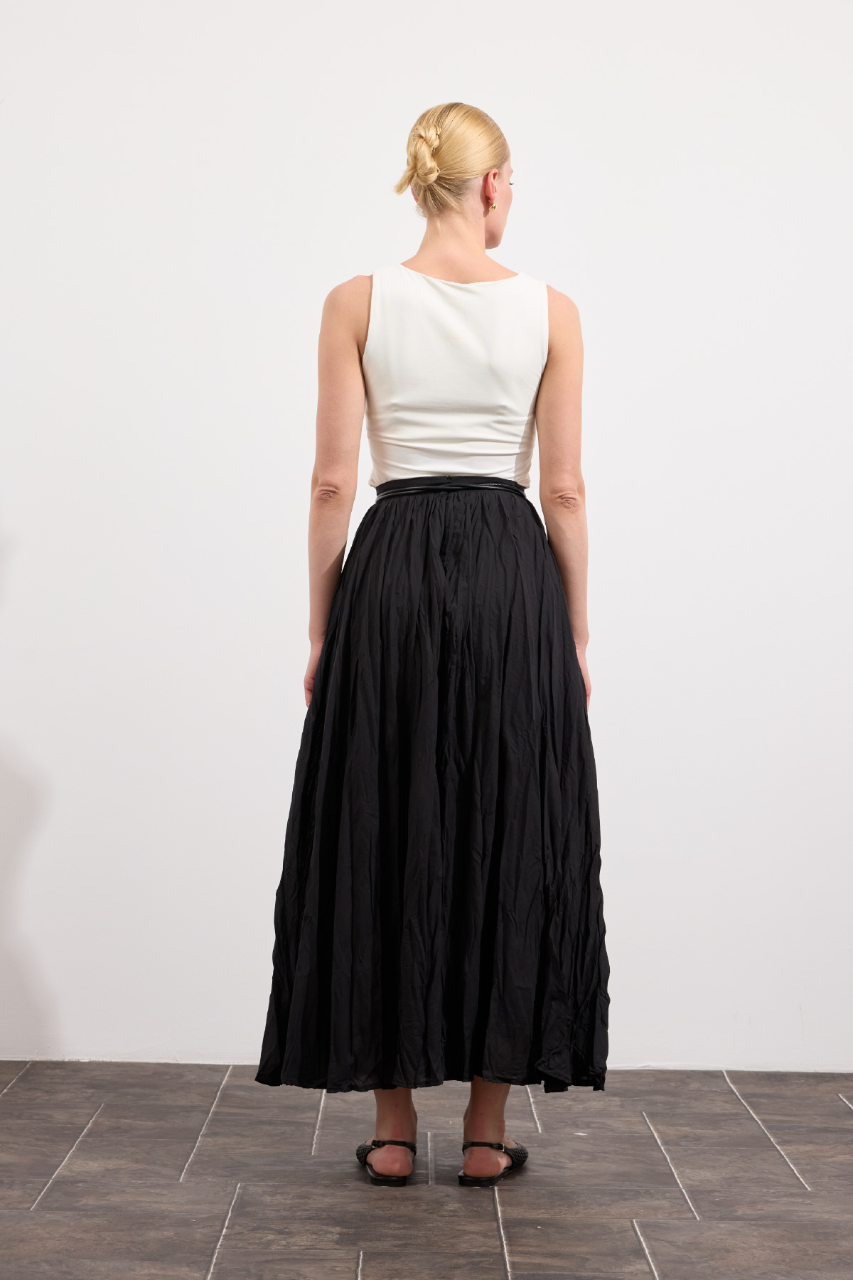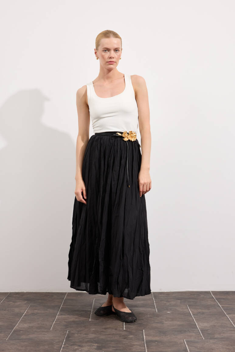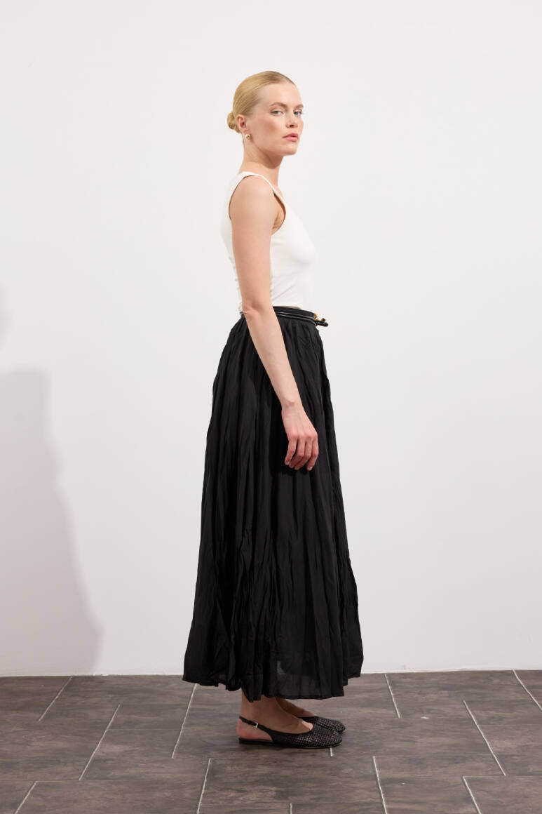 Hafif ve nefes alabilen kumaş,Fermuarlı,Kırışık efektli modern yüzeyYüksek bel tasarımı,Günlük ve özel kombinlere uyumlu