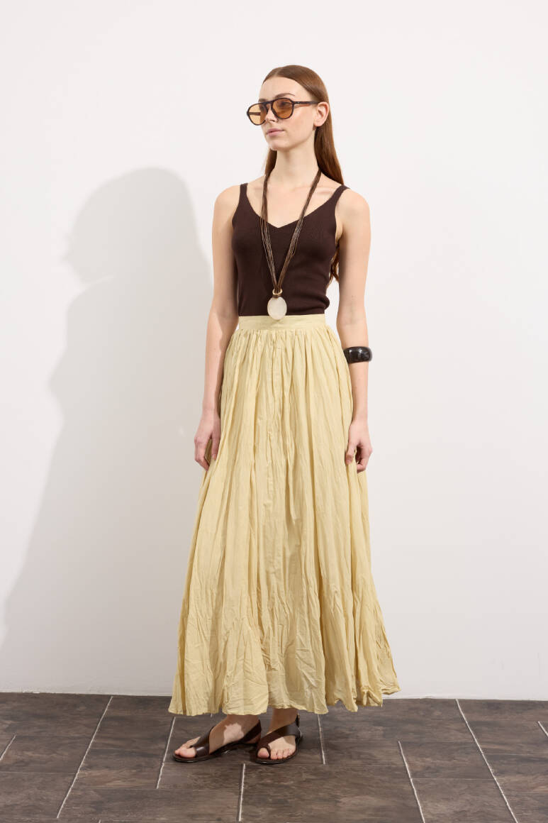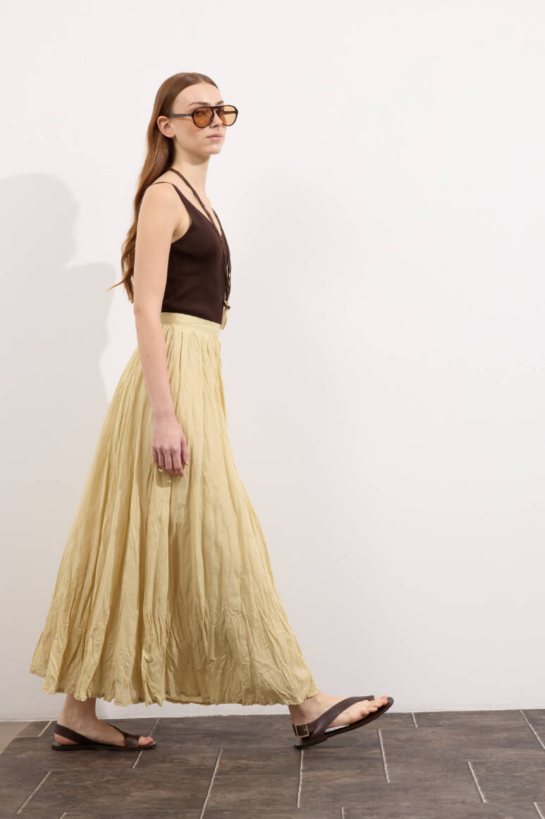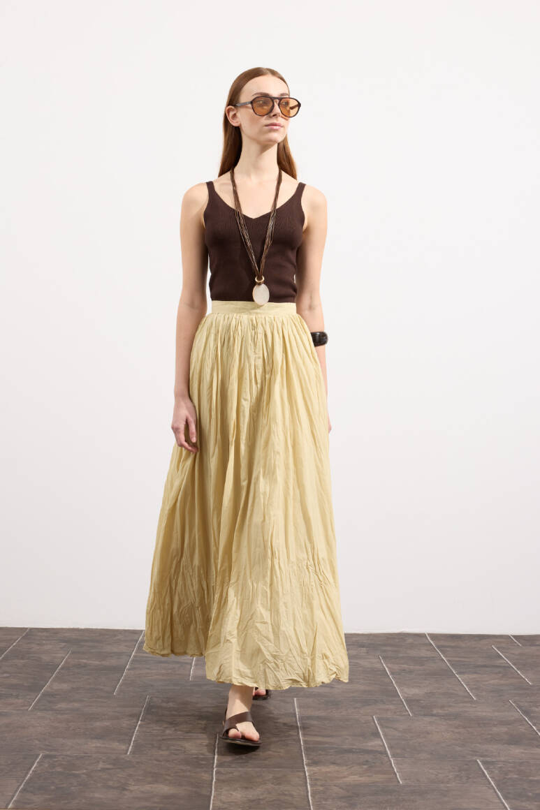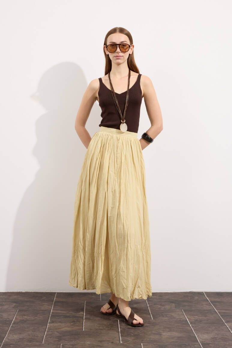 Hafif ve nefes alabilen kumaş,Fermuarlı,Kırışık efektli modern yüzeyYüksek bel tasarımı,Günlük ve özel kombinlere uyumlu