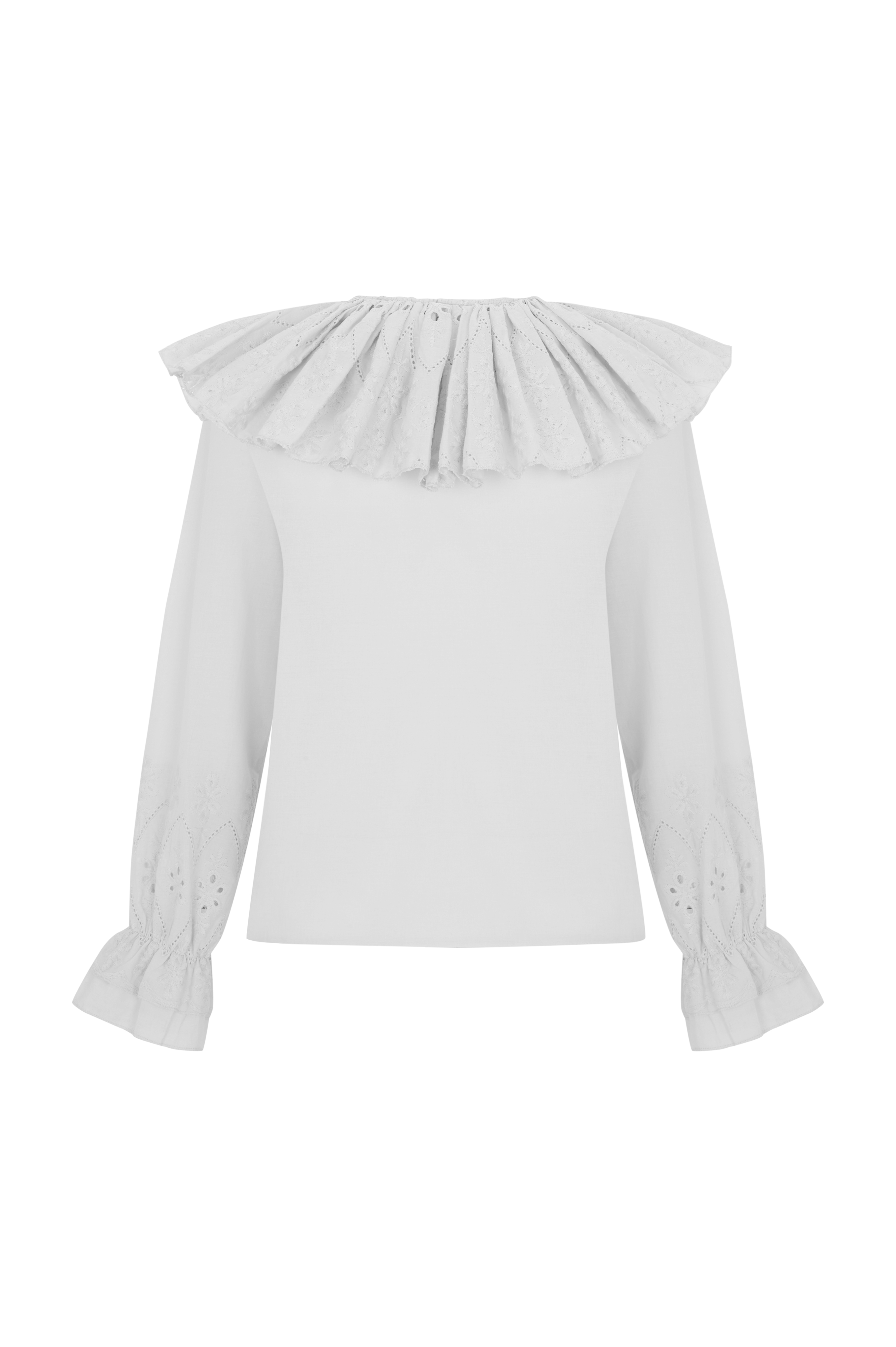 Zarif brode detayları ve fırfır süslemeli yakasıyla feminen bir şıklık sunan bu lacivert gömlek, sofistike görünümüyle stilinizi bir üst seviyeye taşıyor. %100 pamuk dokusu sayesinde gün boyu nefes alabilir ve konforlu bir kullanım sağlar.