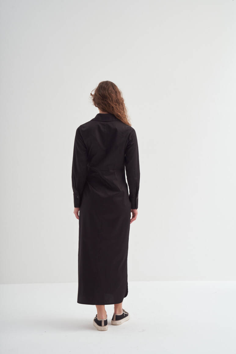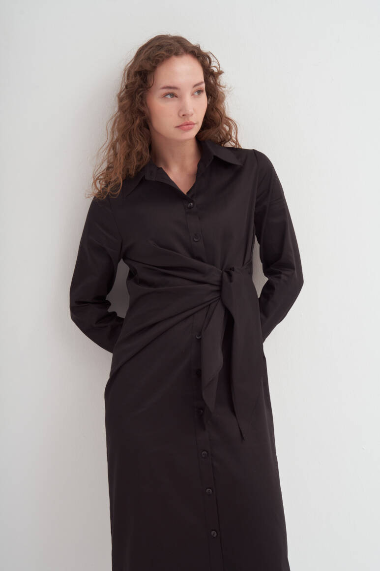 Yandan Düğümlü Gömlek Elbise Siyah - 4