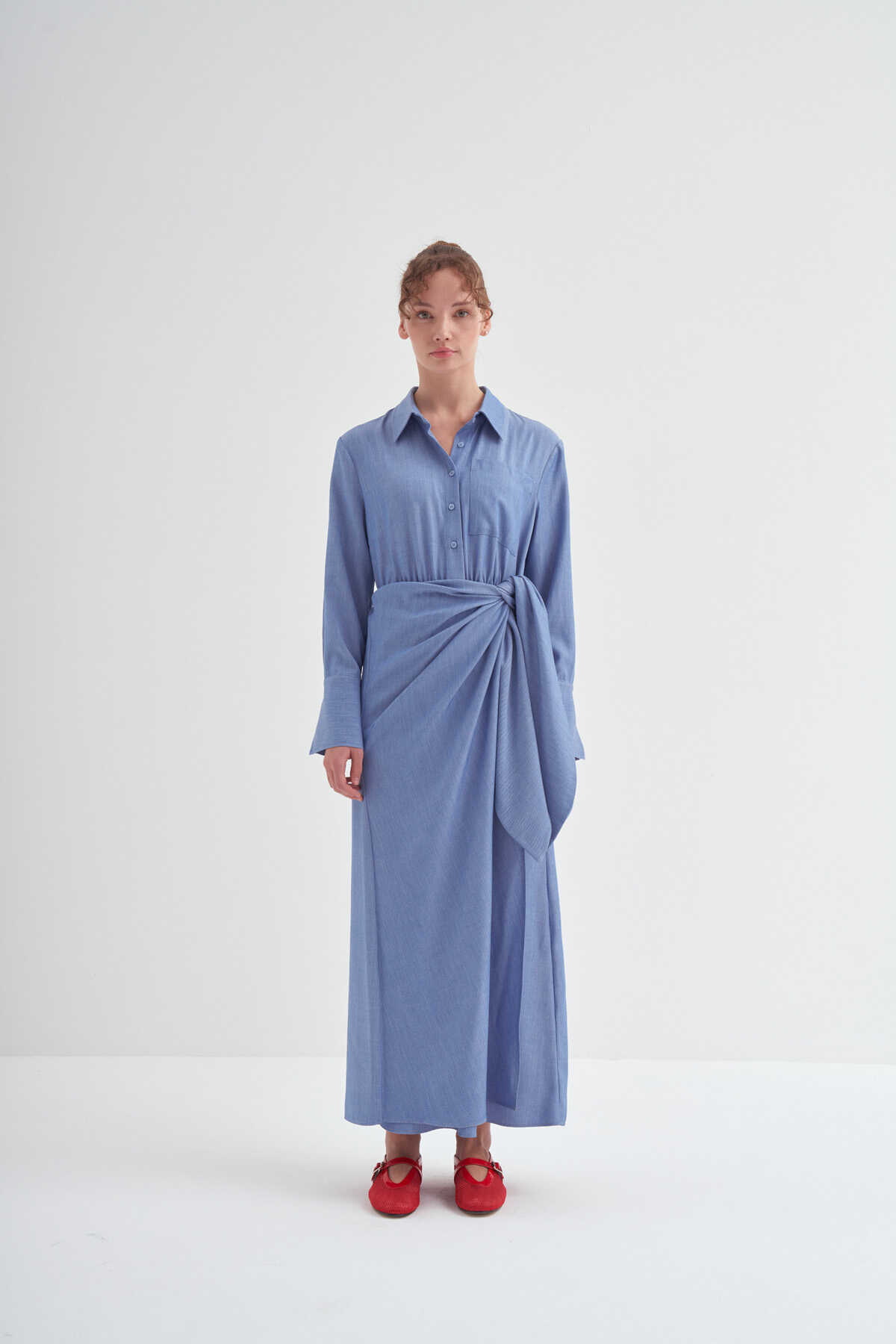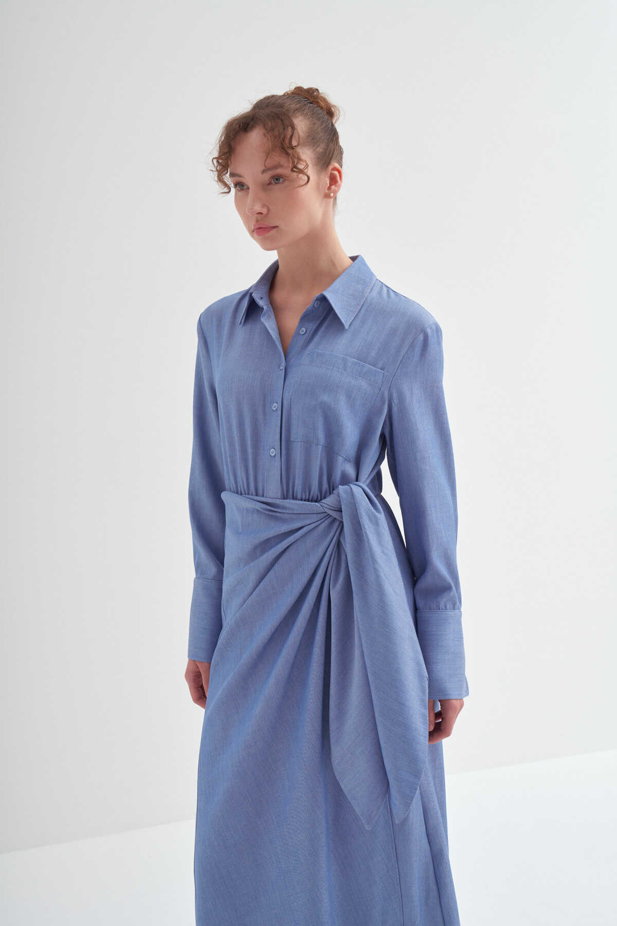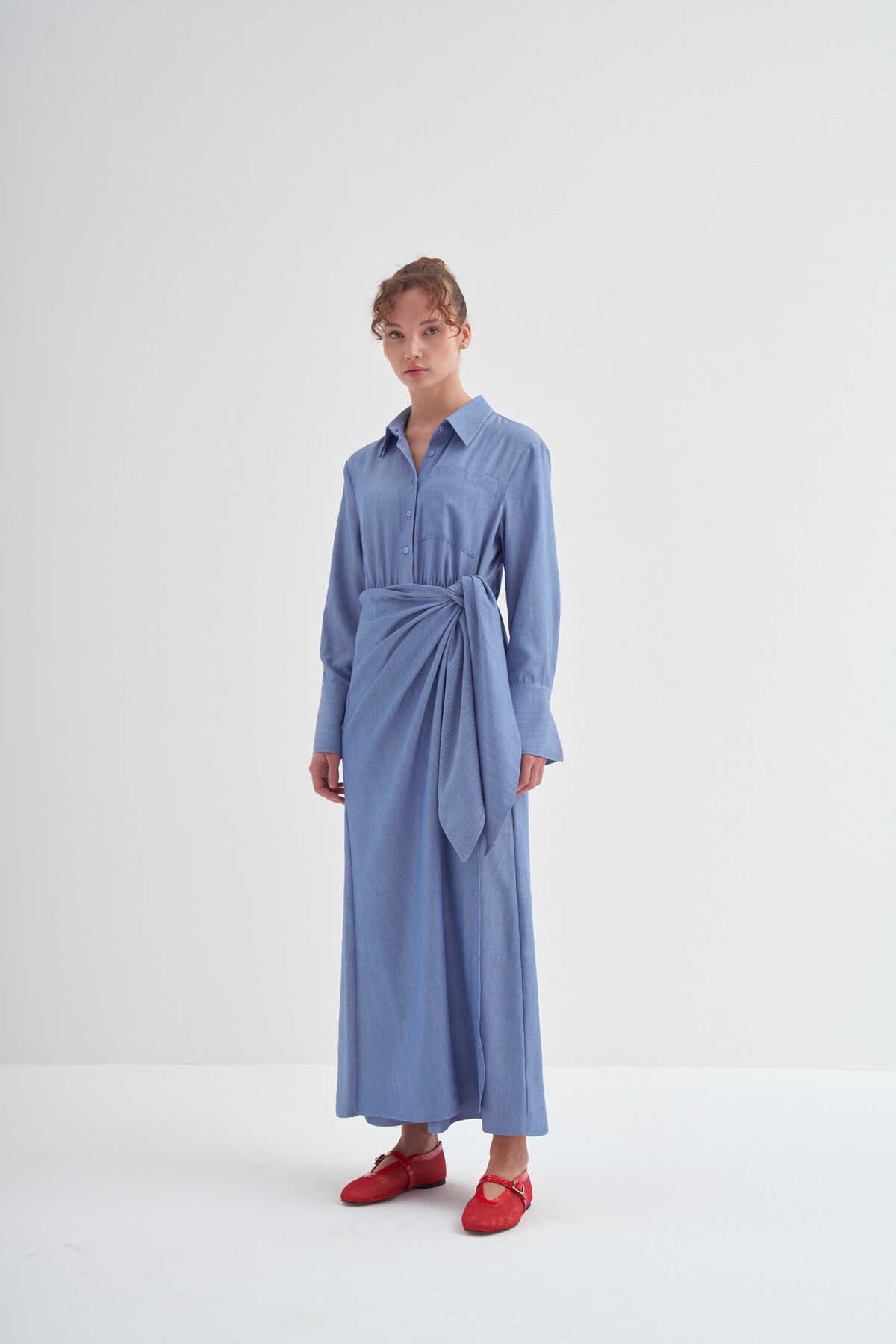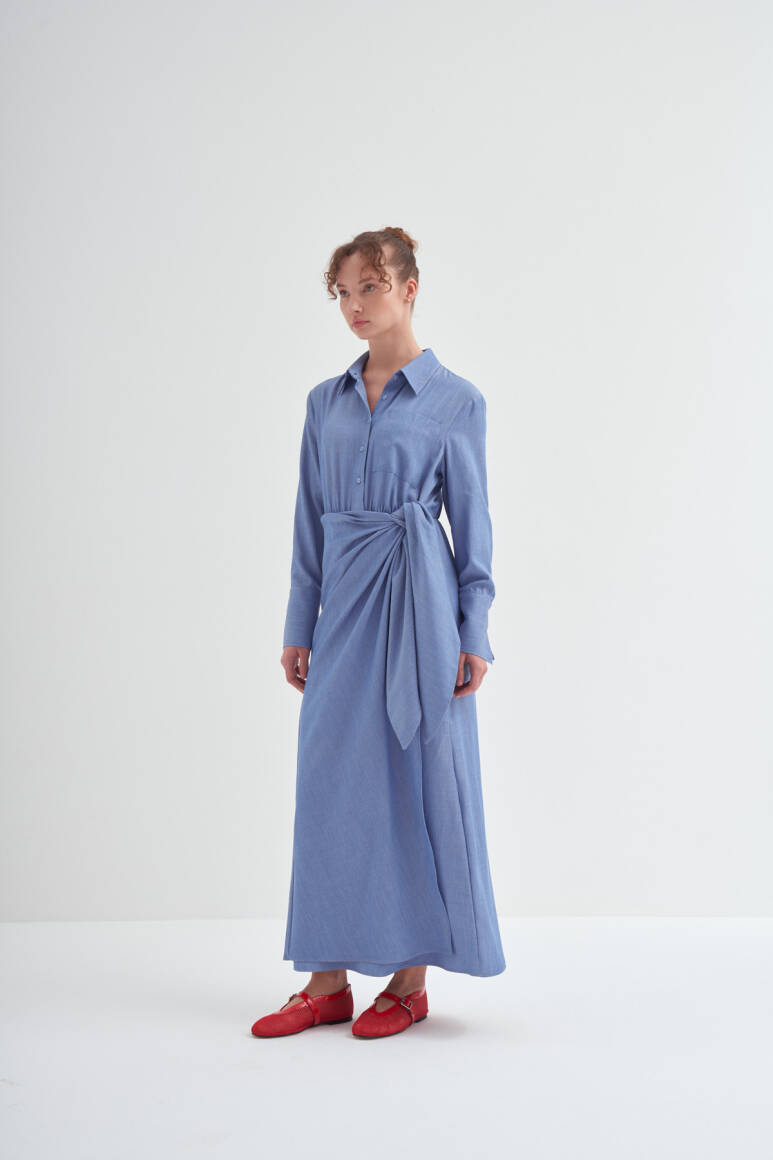 • Bağlama detaylı, uzun kollu, kusursuz özel formlu, gömlek elbise