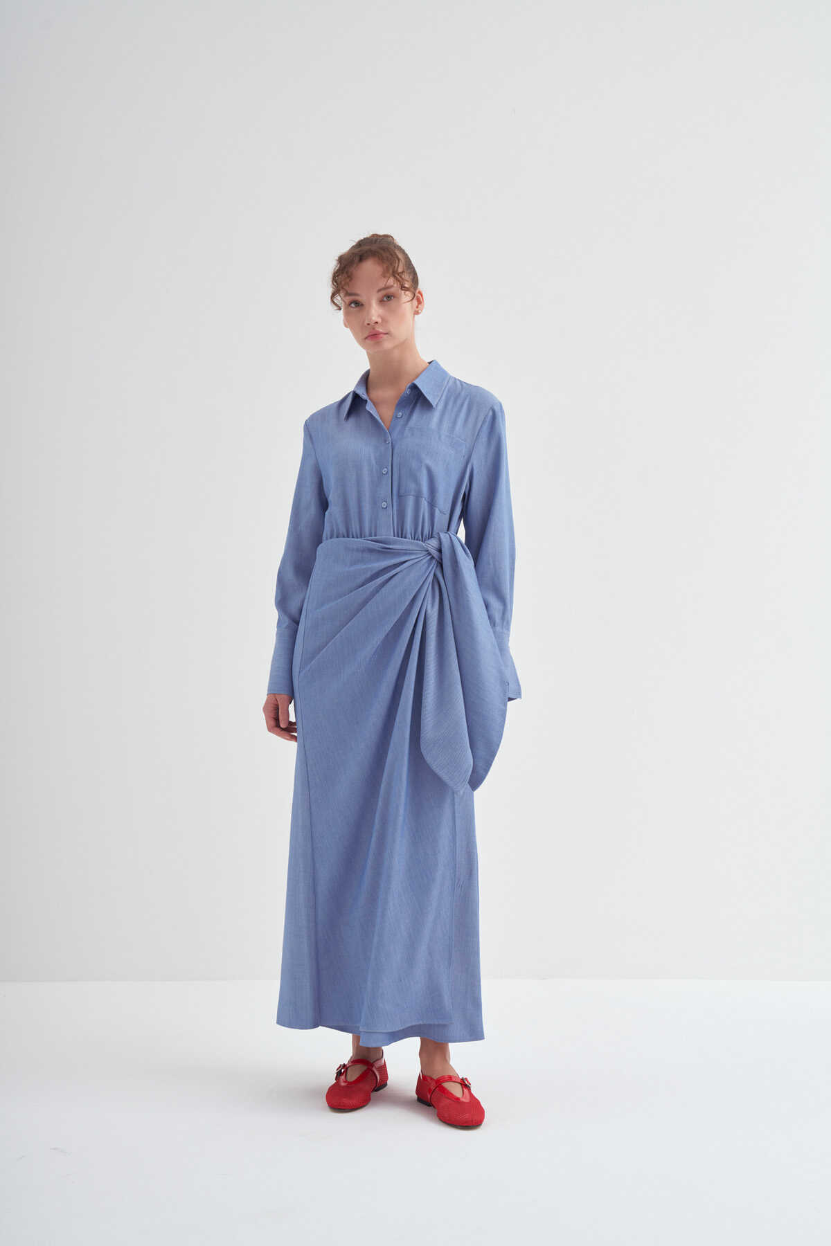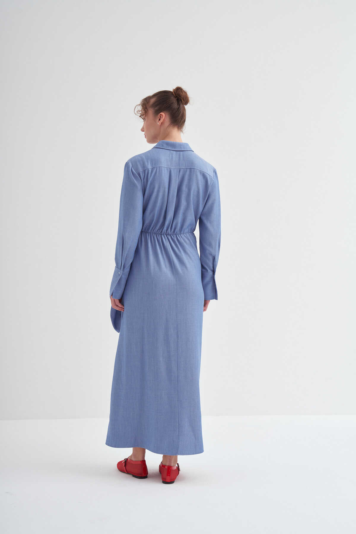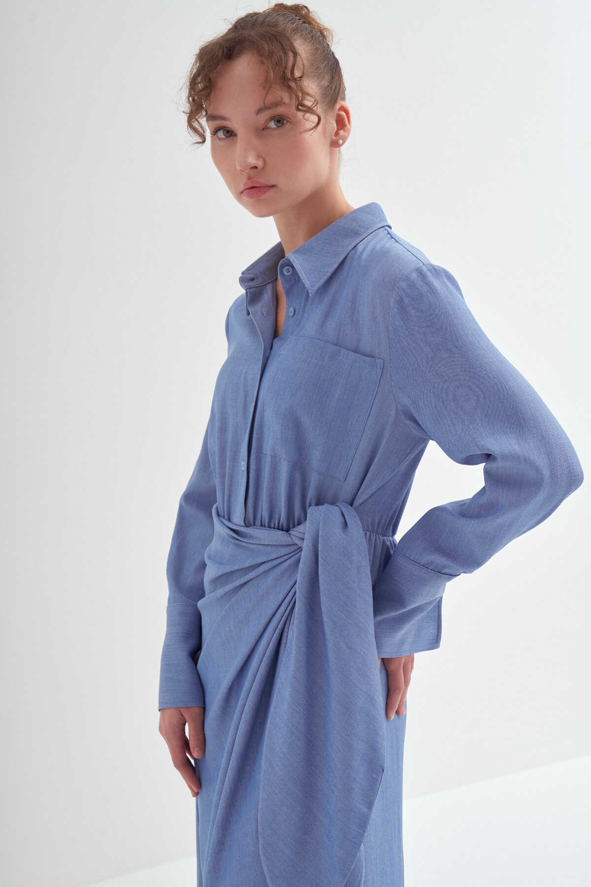 • Bağlama detaylı, uzun kollu, kusursuz özel formlu, gömlek elbise
