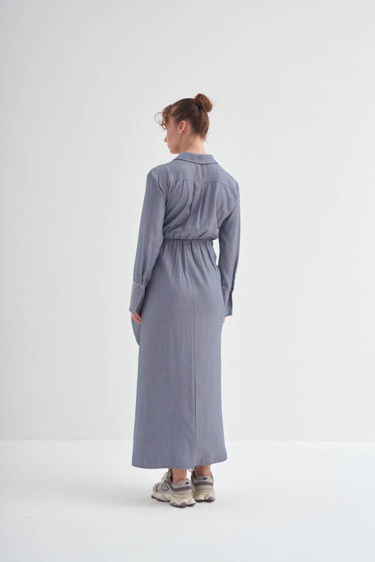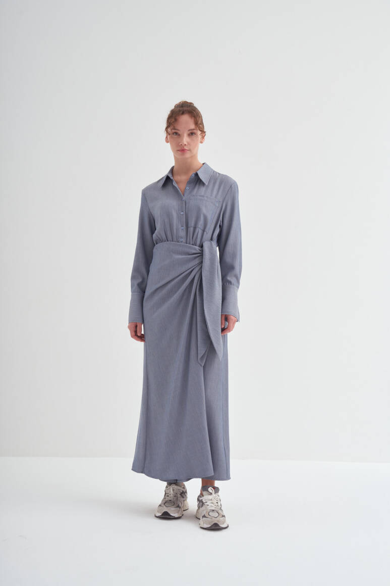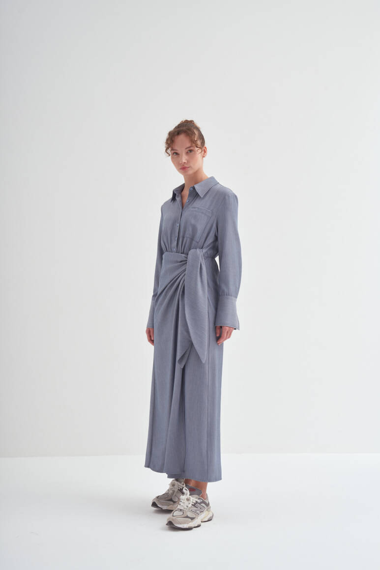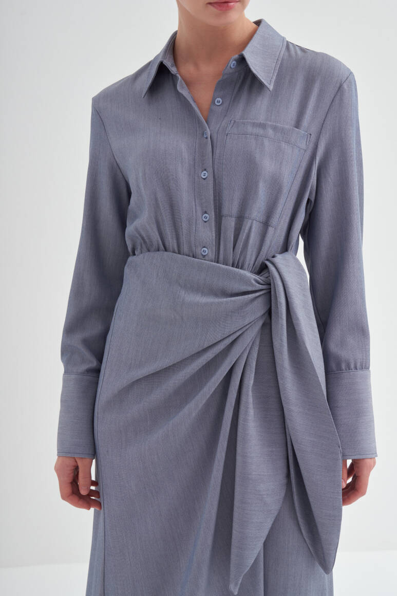 • Bağlama detaylı, uzun kollu, kusursuz özel formlu, gömlek elbise