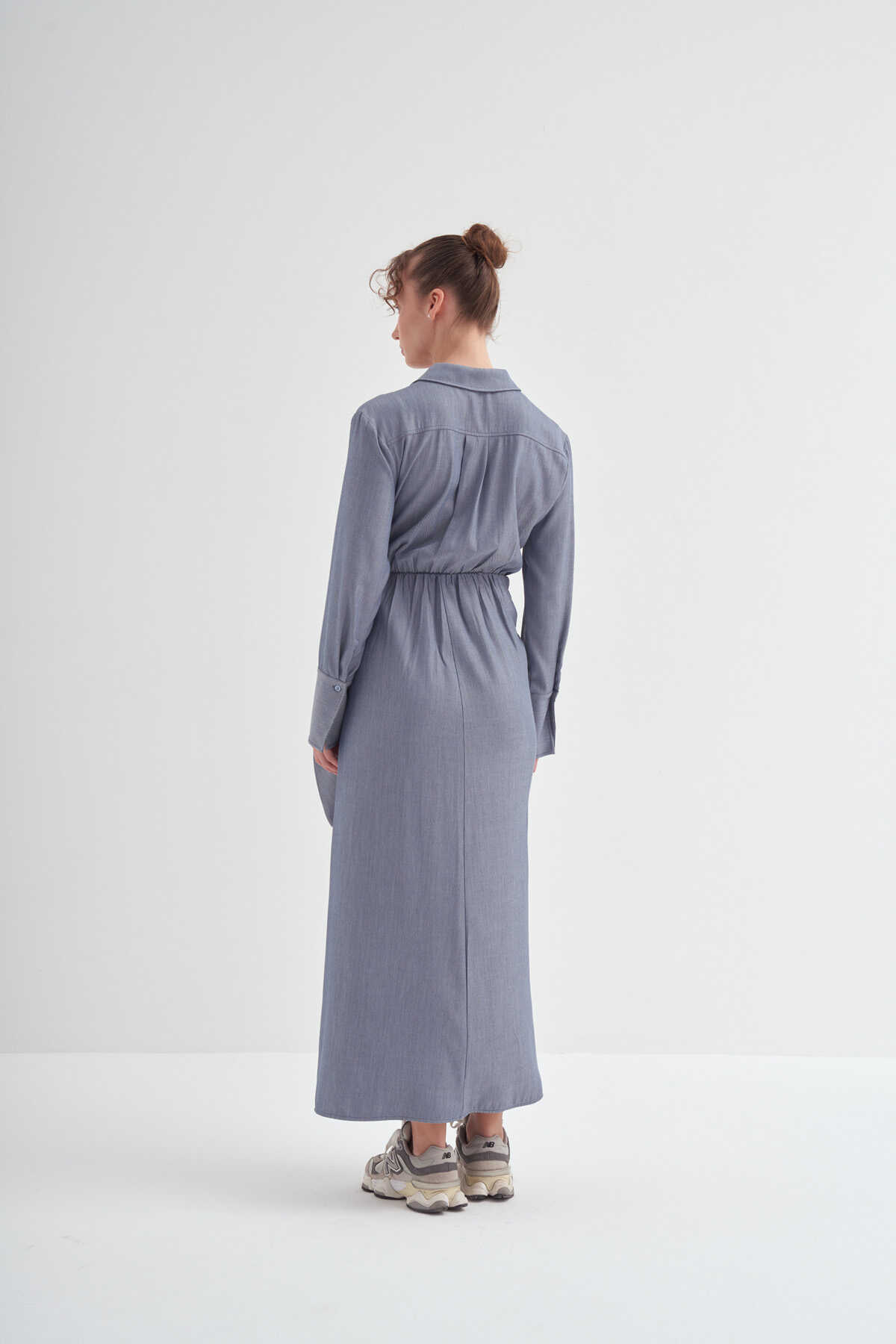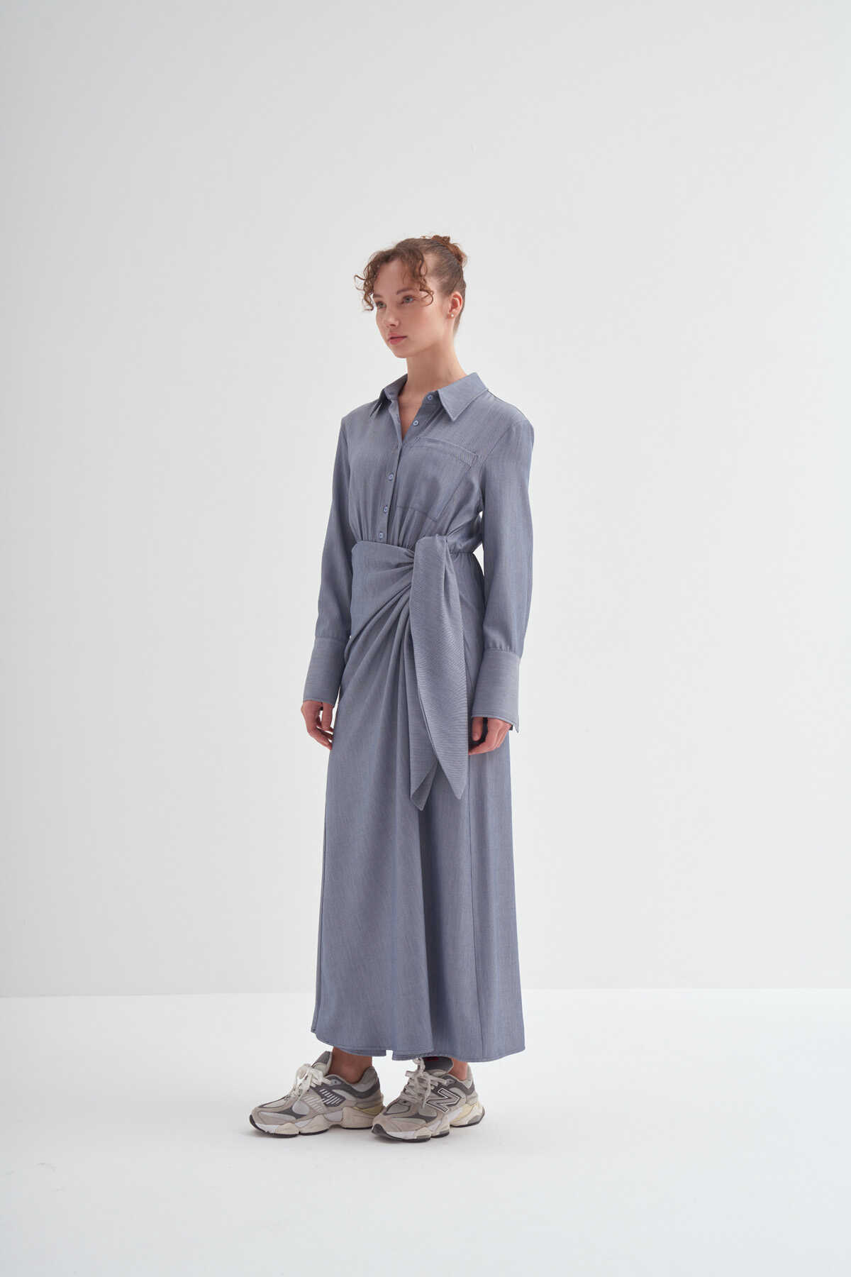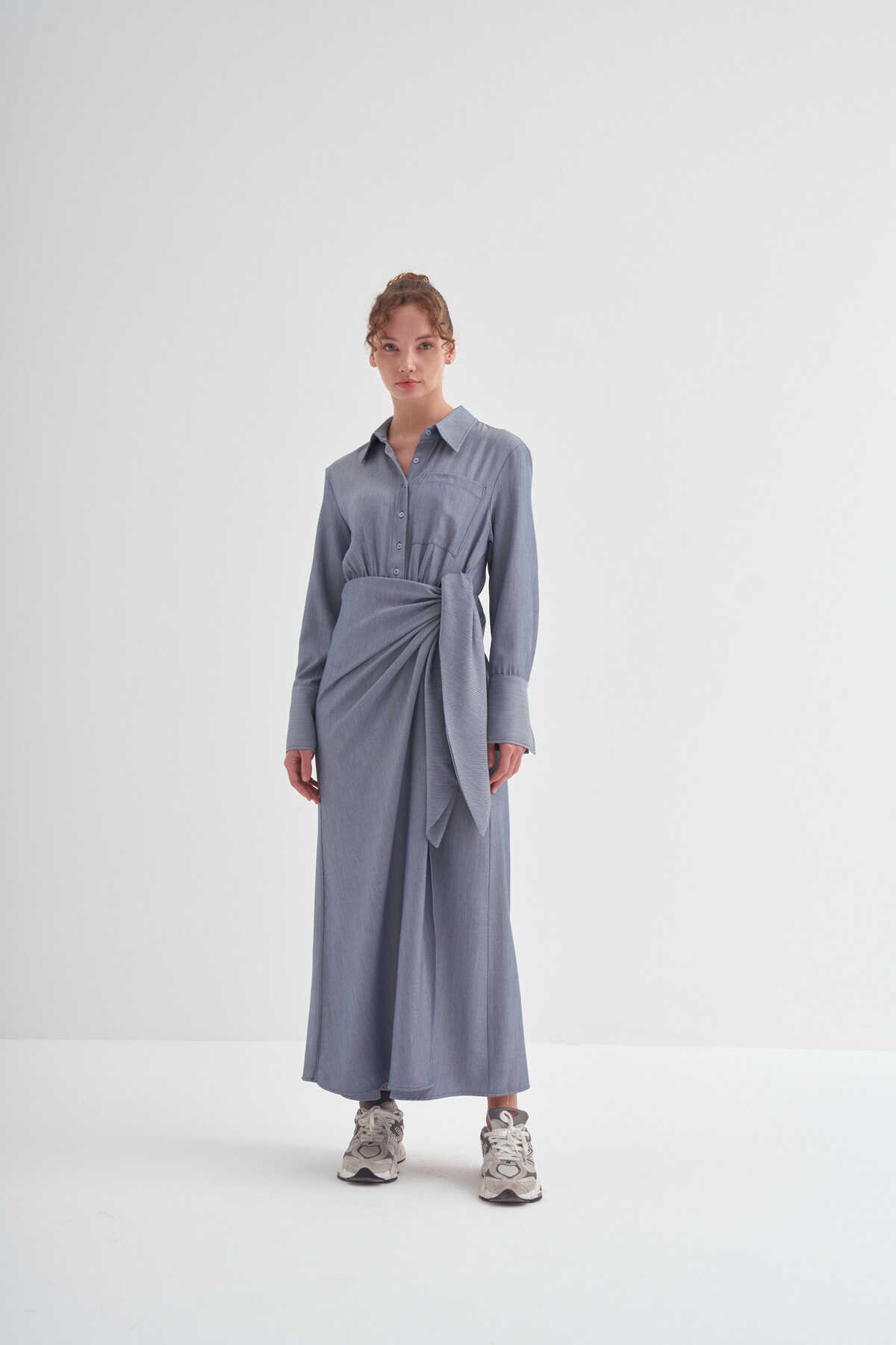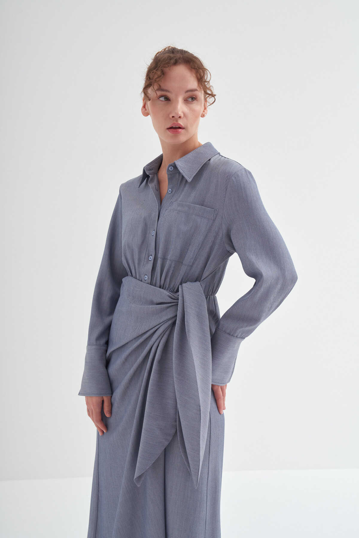 • Bağlama detaylı, uzun kollu, kusursuz özel formlu, gömlek elbise